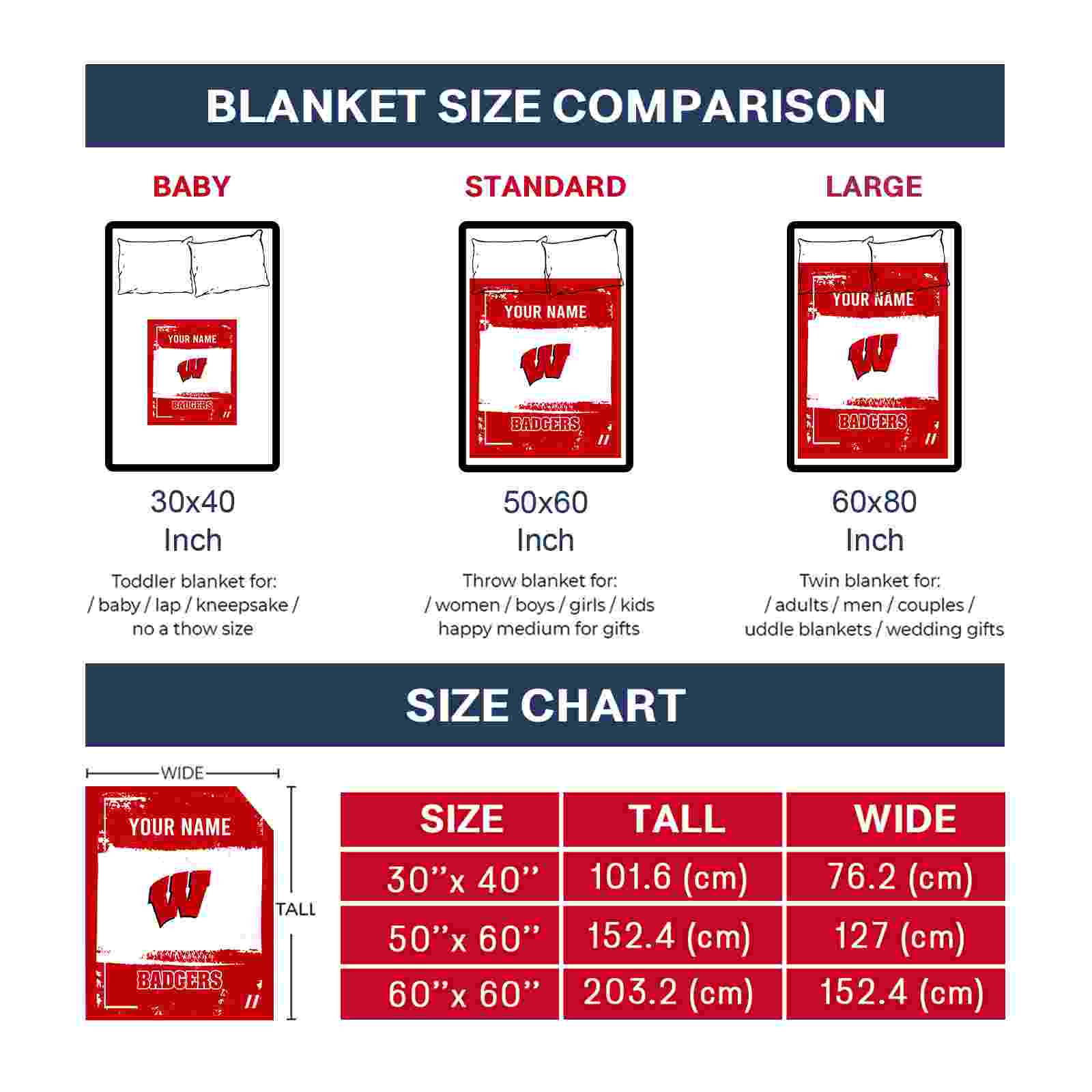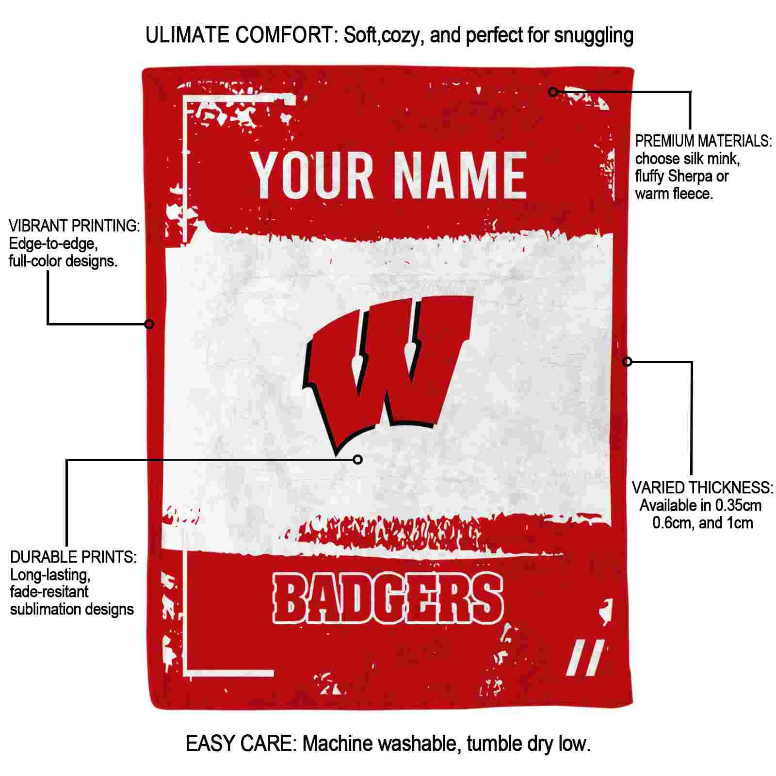 Without a doubt, the Custom Wisconsin Badgers Paint Strokes Red White Blanket from Wisconsin Badgers Blankets collection is offering true fans a chance to showcase passion in a cool way. Personalize it with your favorite team’s logo or a meaningful name to make it uniquely yours. Isn’t that great? The full-color print ensures vibrant, edge-to-edge designs, bringing your sports enthusiasm to life!