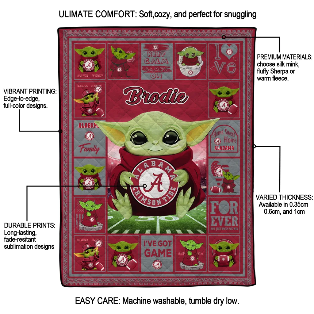 Customized Alabama Crimson Tide Yody Baby Pattern Crimson Quilt Blanket