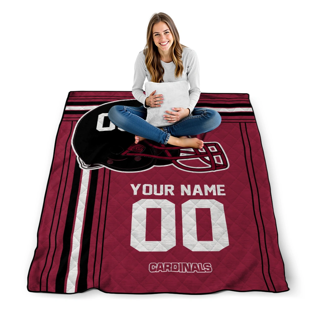 Customized Arizona Cardinals Helmet Theme Red Quilt Blanket