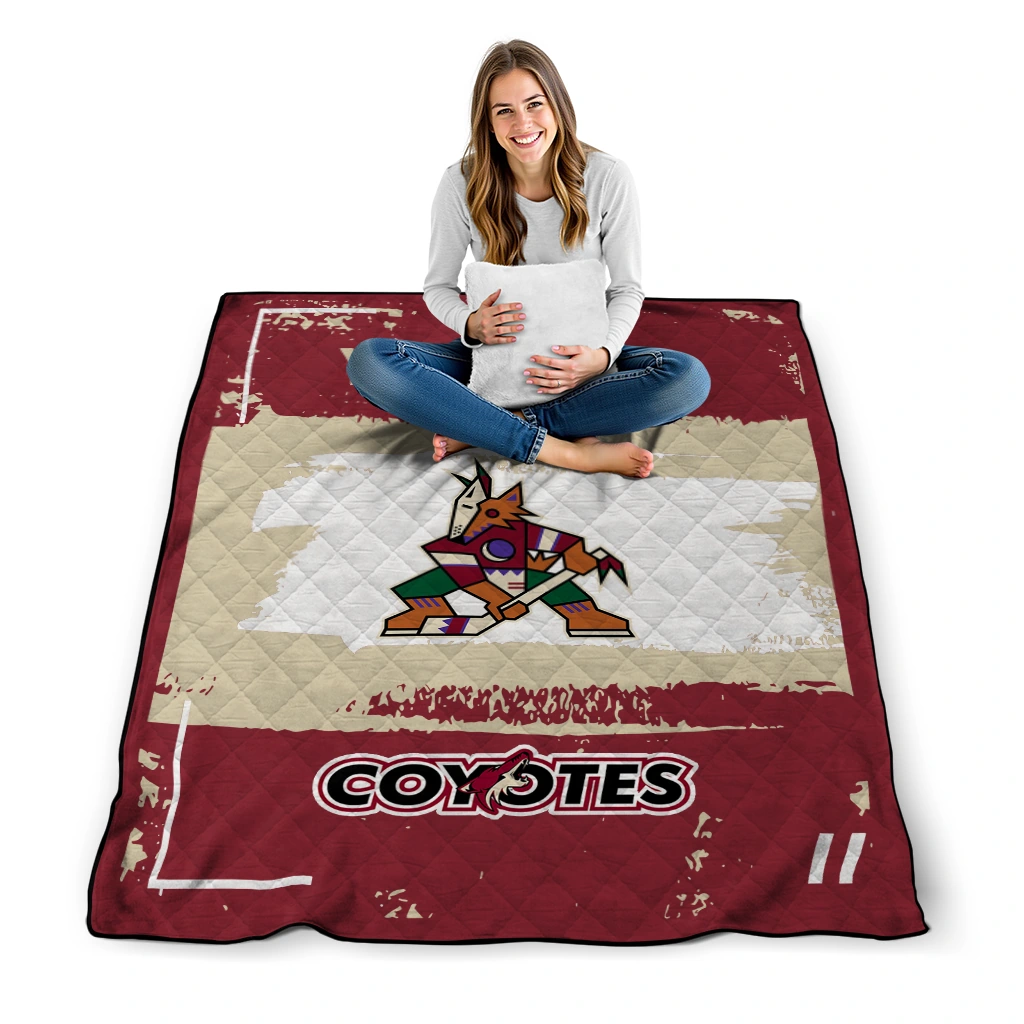 The Customized Arizona Coyotes Grunge Patch Red White Quilt Blanket is more than a blanket—it’s everyday comfort, thoughtfully made. Crafted from premium quilting fabric with a soft microfiber touch, it offers a smooth hand-feel and lasting coziness. Layered quilting with a cotton-filled core provides adaptable warmth across seasons while maintaining a clean, tailored look on your bed or sofa.