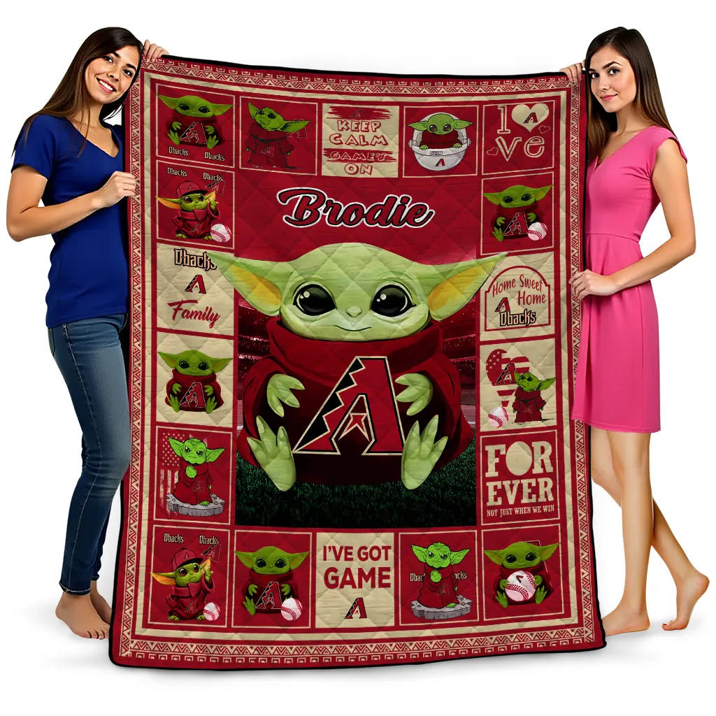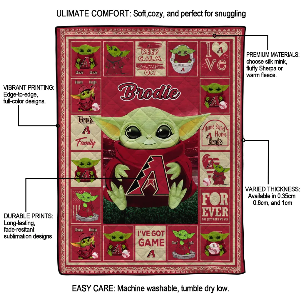 Customized Arizona Diamondbacks Yody Baby Motif Red Quilt Blanket