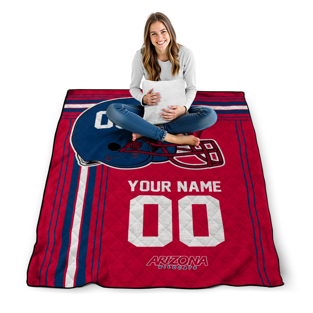 Wrap yourself in warmth and pride with the Customized Arizona Wildcats Helmet Theme Red Quilt Blanket from the Arizona Wildcats Blankets collection at Yes That Blanket. Made from 100% premium quilting-weight polyester blended with a touch of microfiber, this quilt offers a smooth, soft finish you’ll love. Choose between two quilting styles—Stipple or Diagonal—and enjoy the comfort of a cotton-filled layer inside that adds extra coziness for every season. The border is available in classic black or white, giving your design a clean, timeless edge.