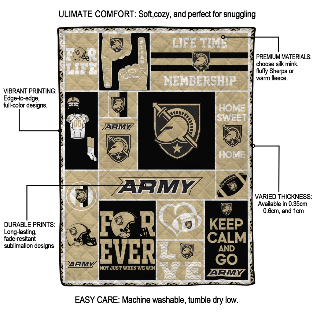 Customized Army Black Knights Helmet Passion Gold Quilt Blanket