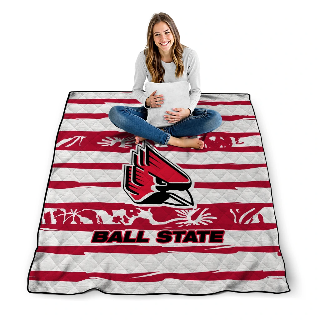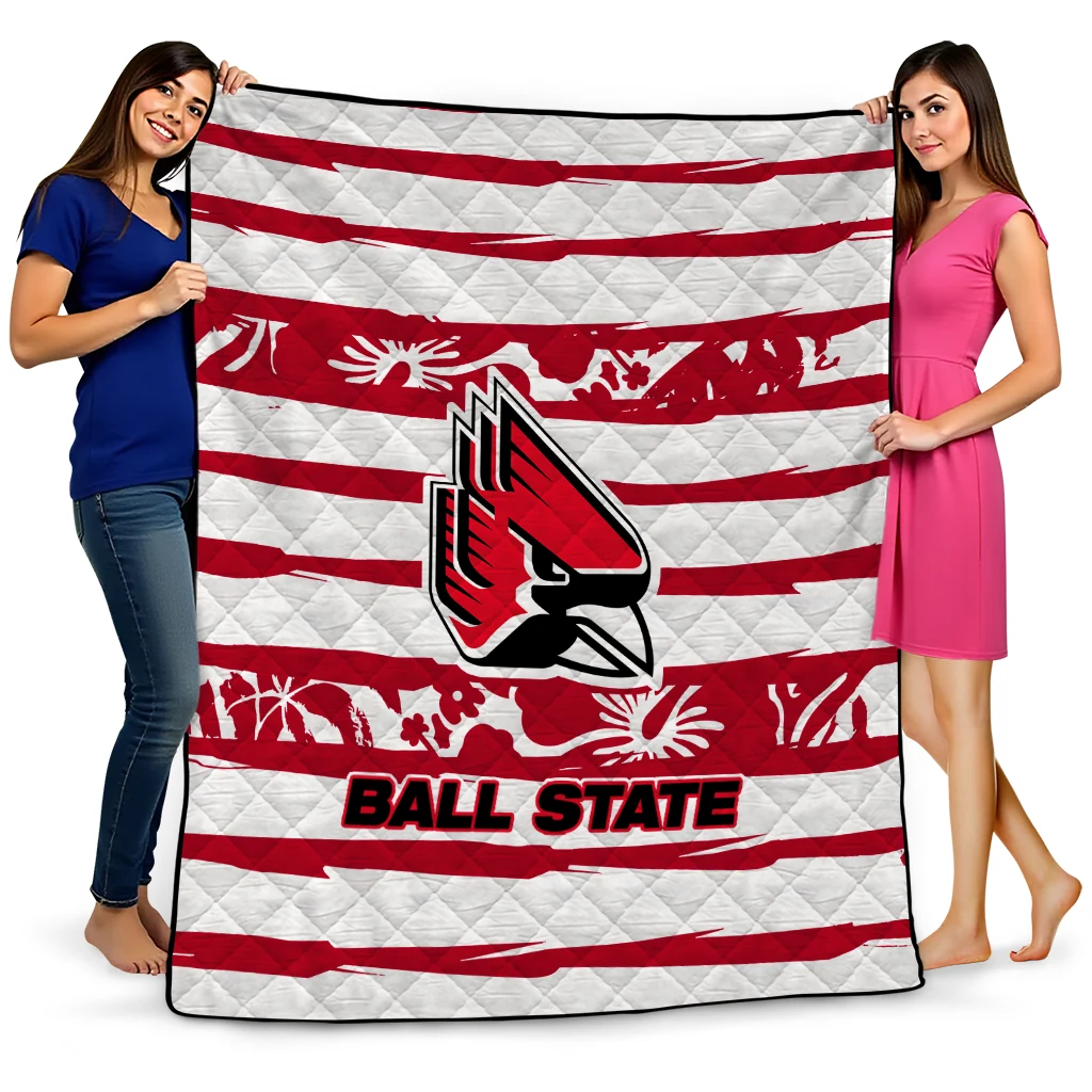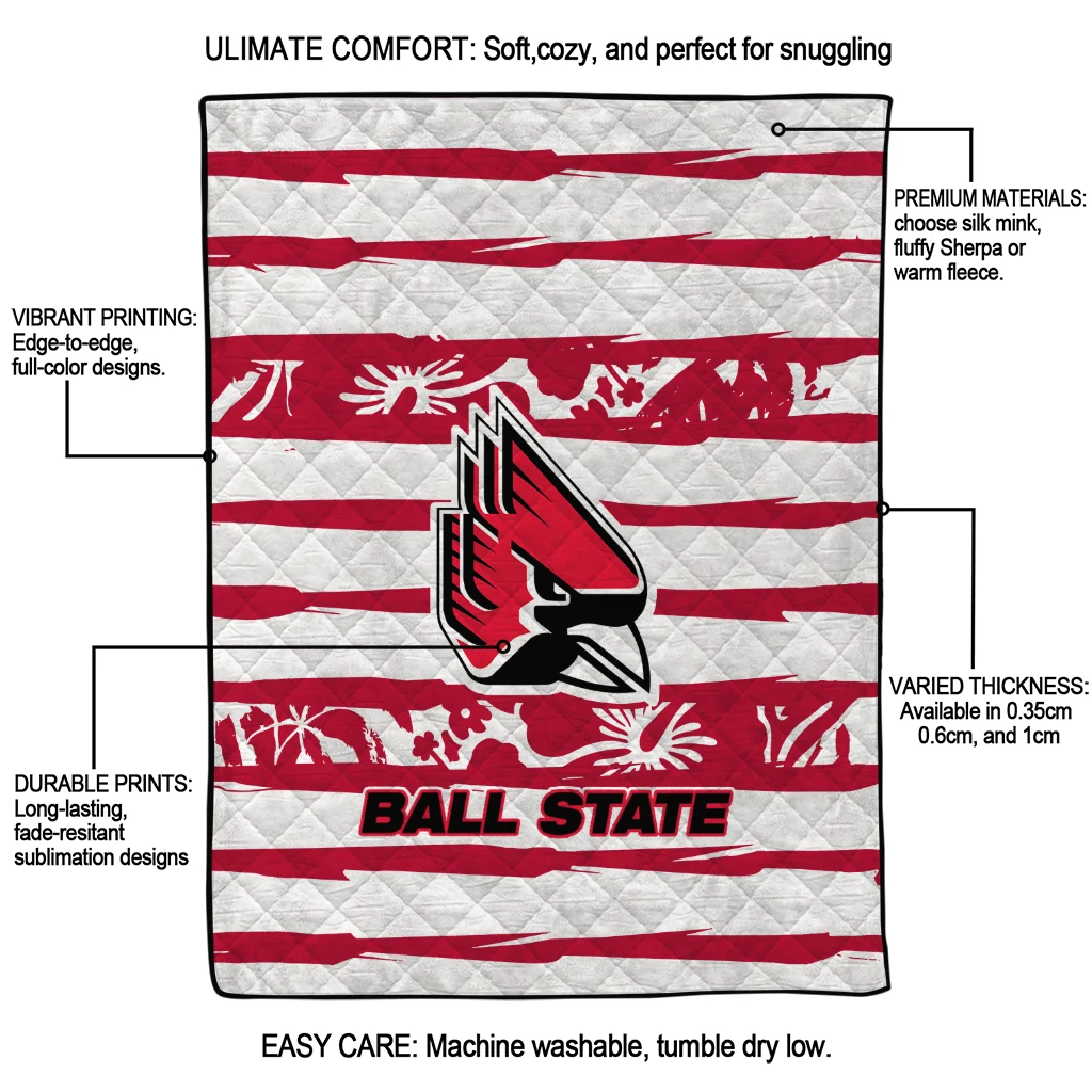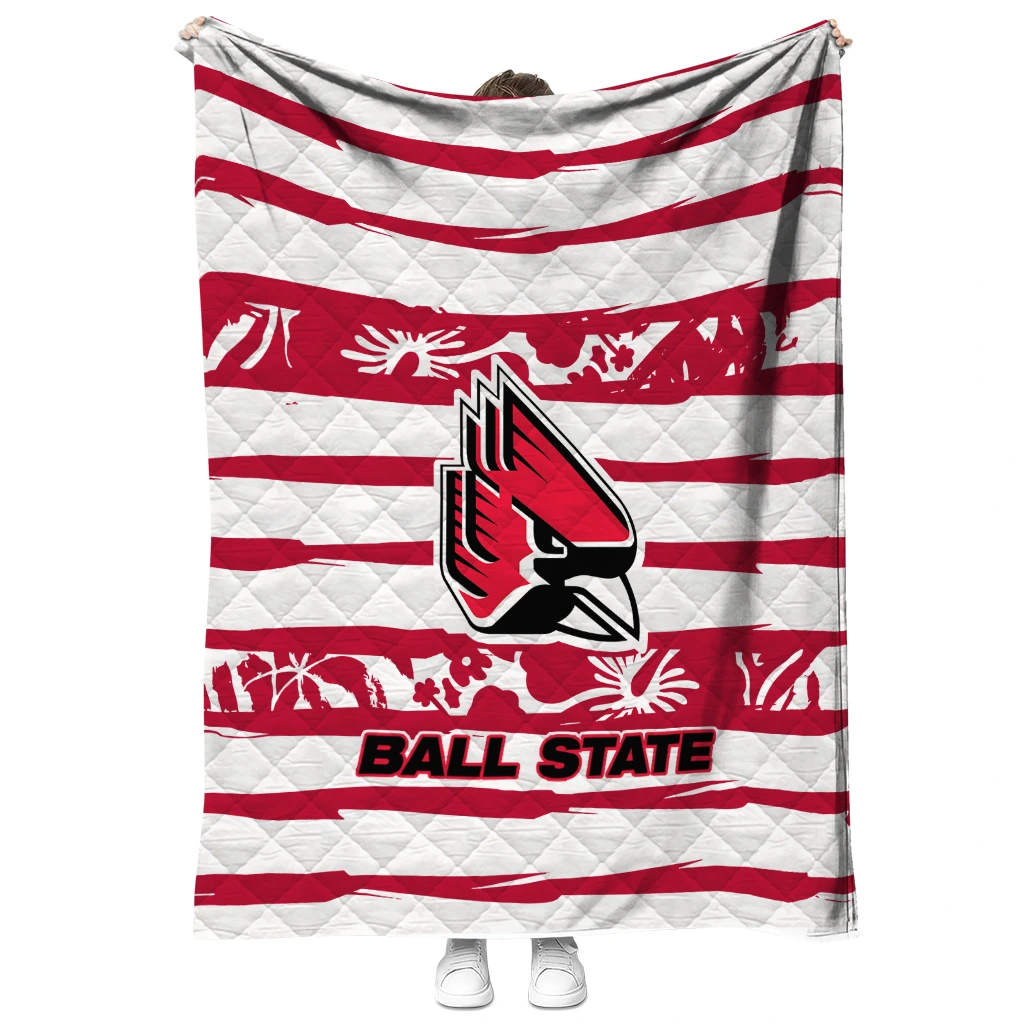 Customized Ball State Cardinals Layered Florals Red White Quilt Blanket