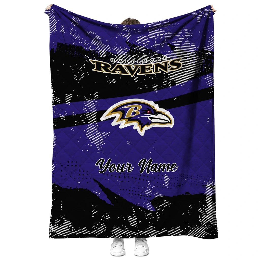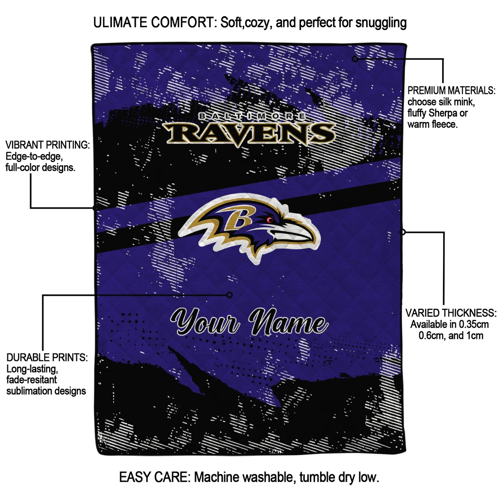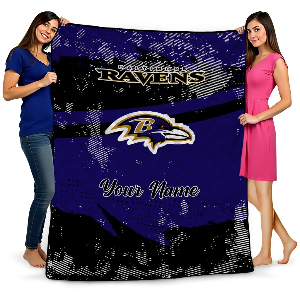 Customized Baltimore Ravens Brushstroke Layers Purple Quilt Blanket