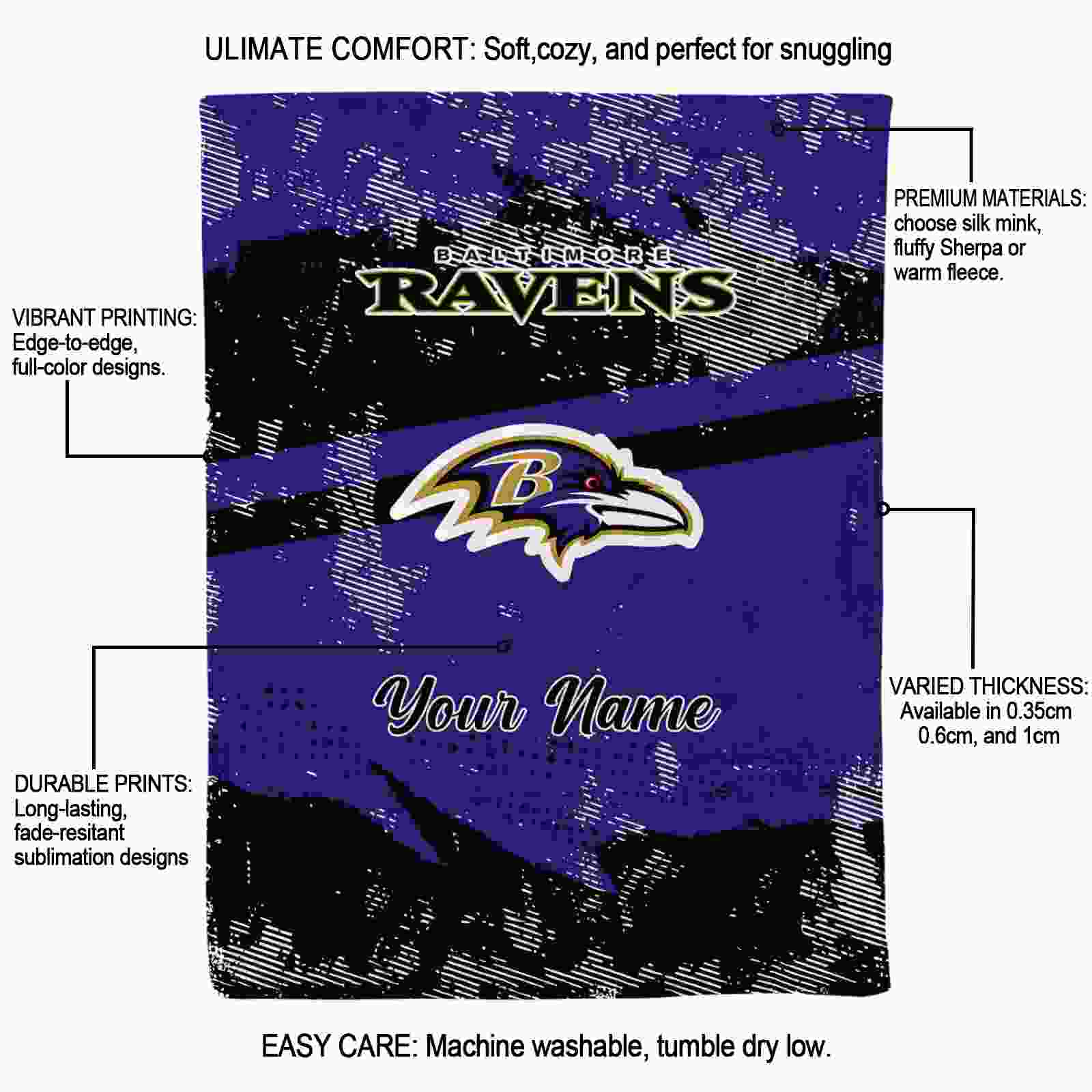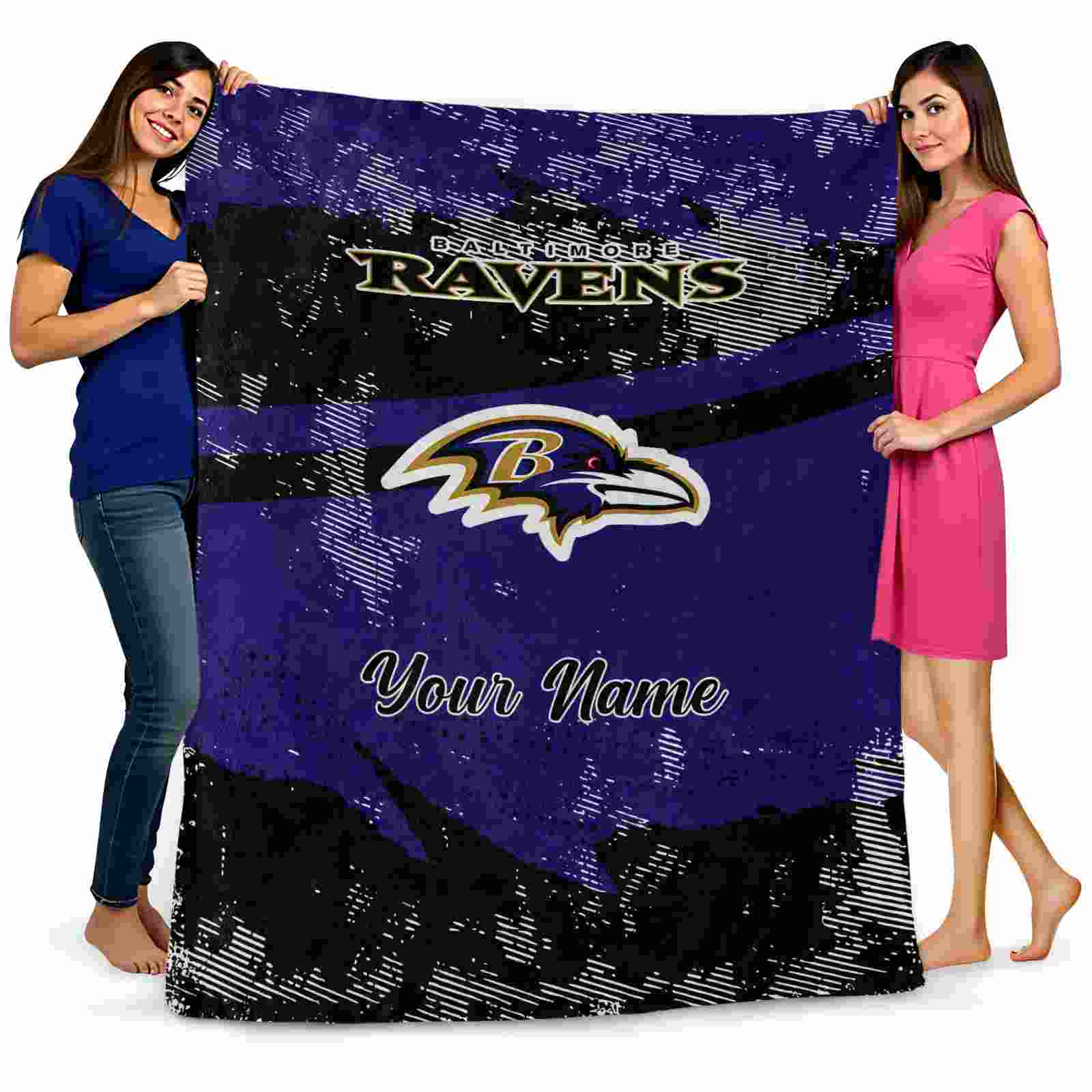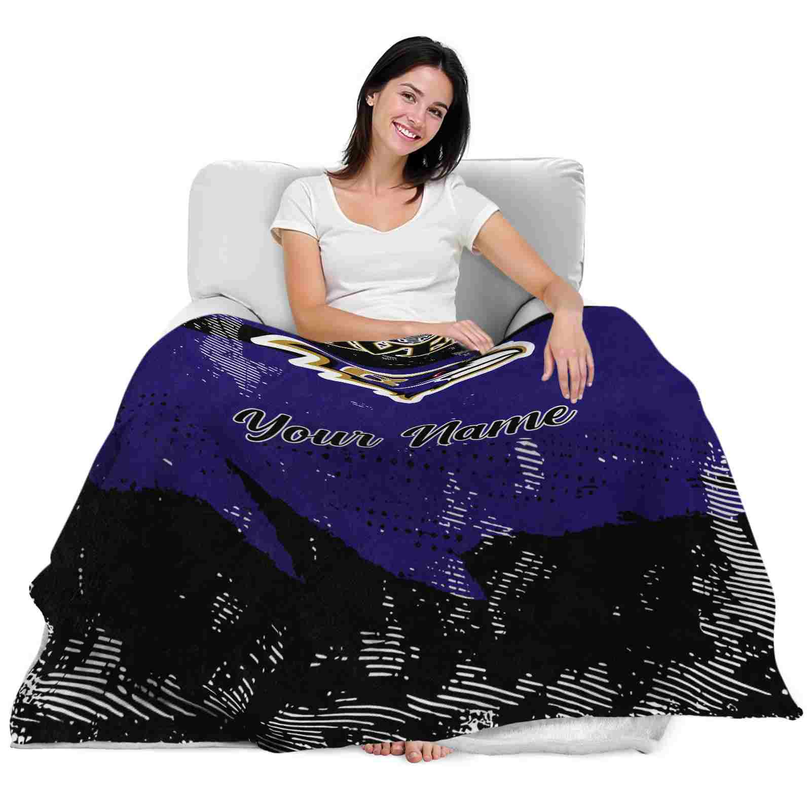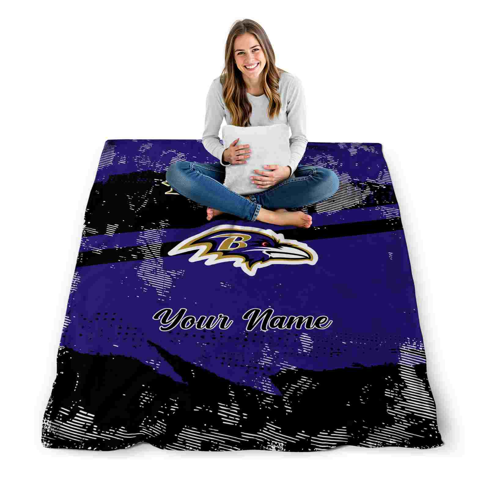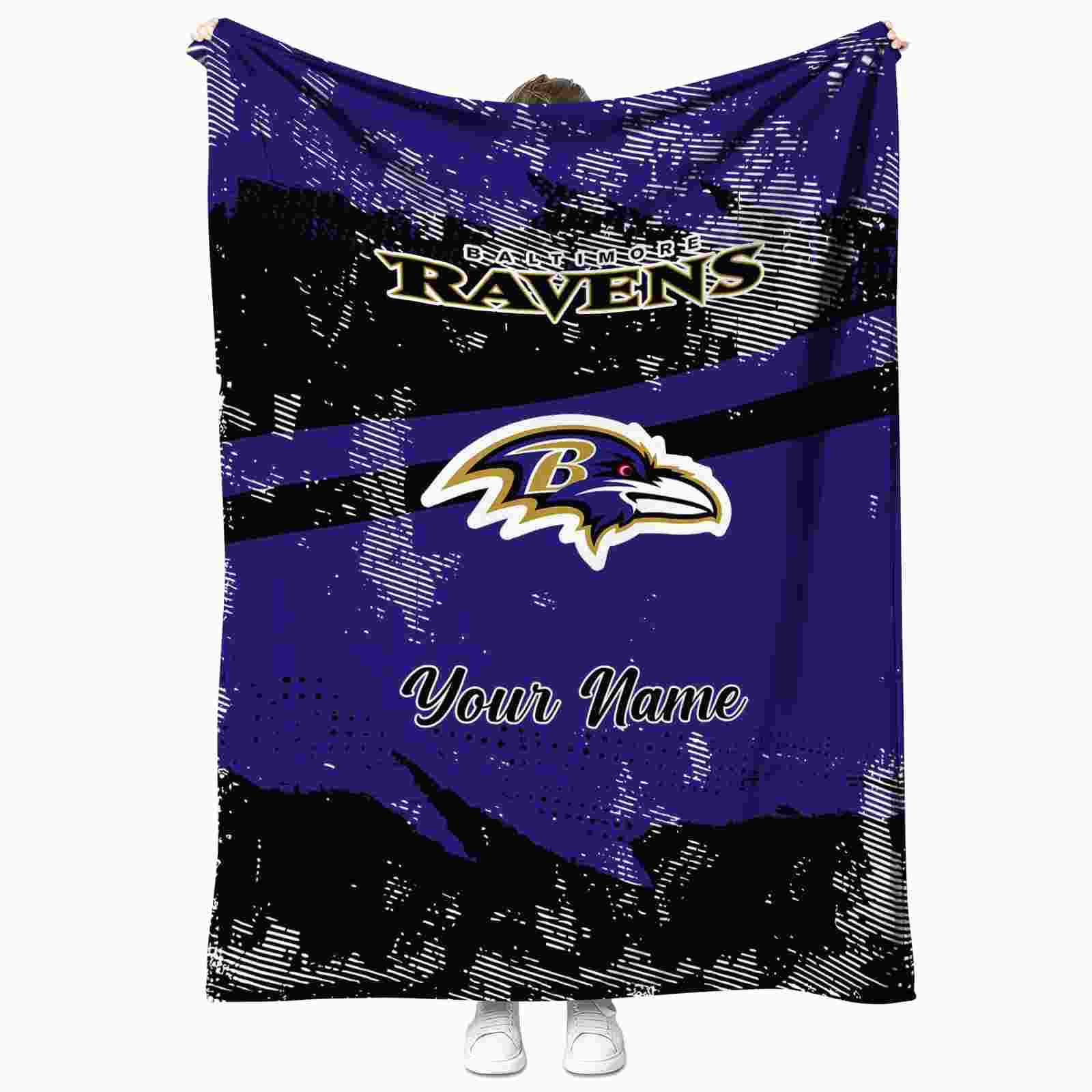 Without a doubt, the Customized Baltimore Ravens Grunge Streaks Purple Blanket from Baltimore Ravens Blankets collection is offering true fans a chance to showcase passion in a cool way. Personalize it with your favorite team’s logo or a meaningful name to make it uniquely yours. Isn’t that great? The full-color print ensures vibrant, edge-to-edge designs, bringing your sports enthusiasm to life!