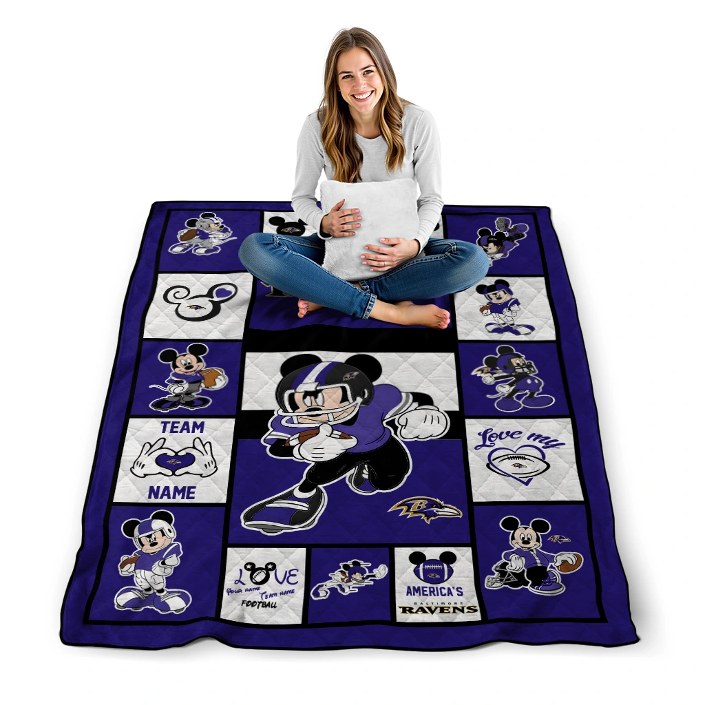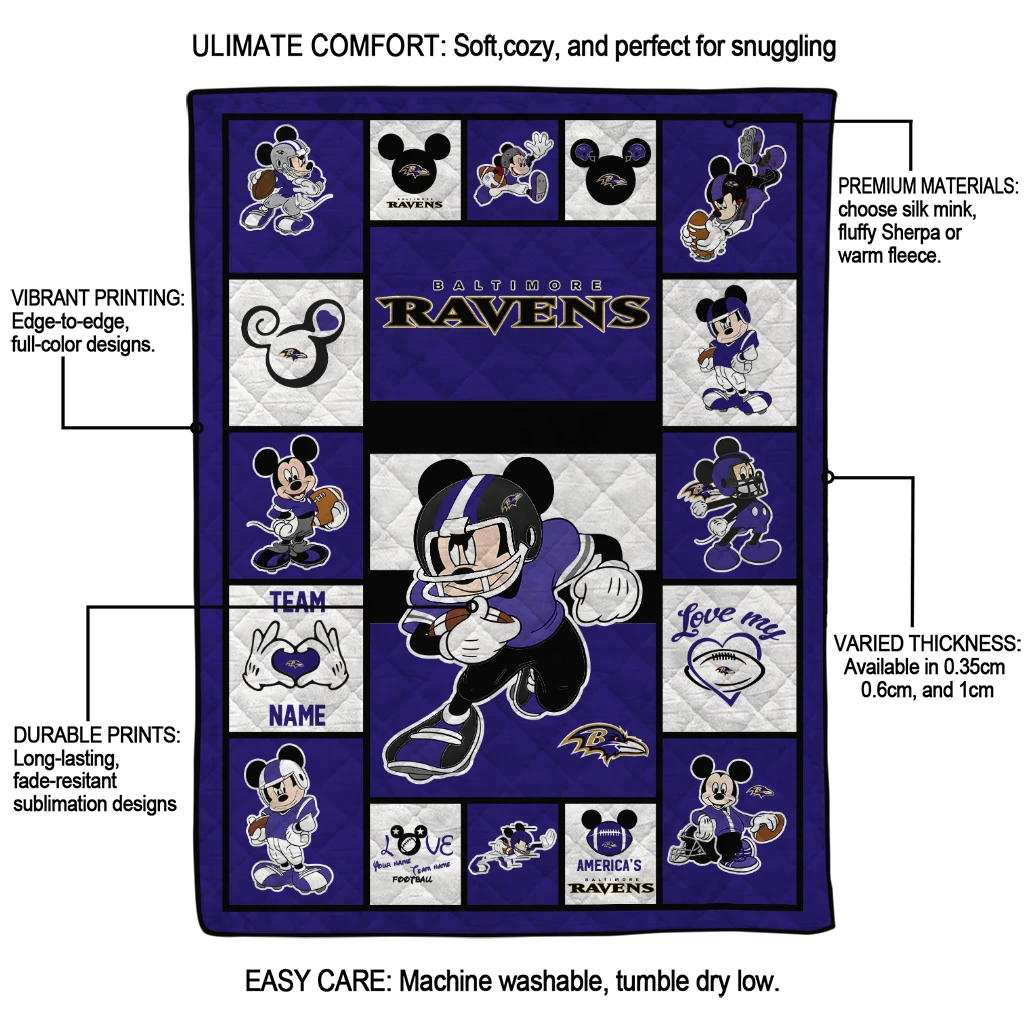 Customized Baltimore Ravens Mickey Crimson Purple White Quilt Blanket