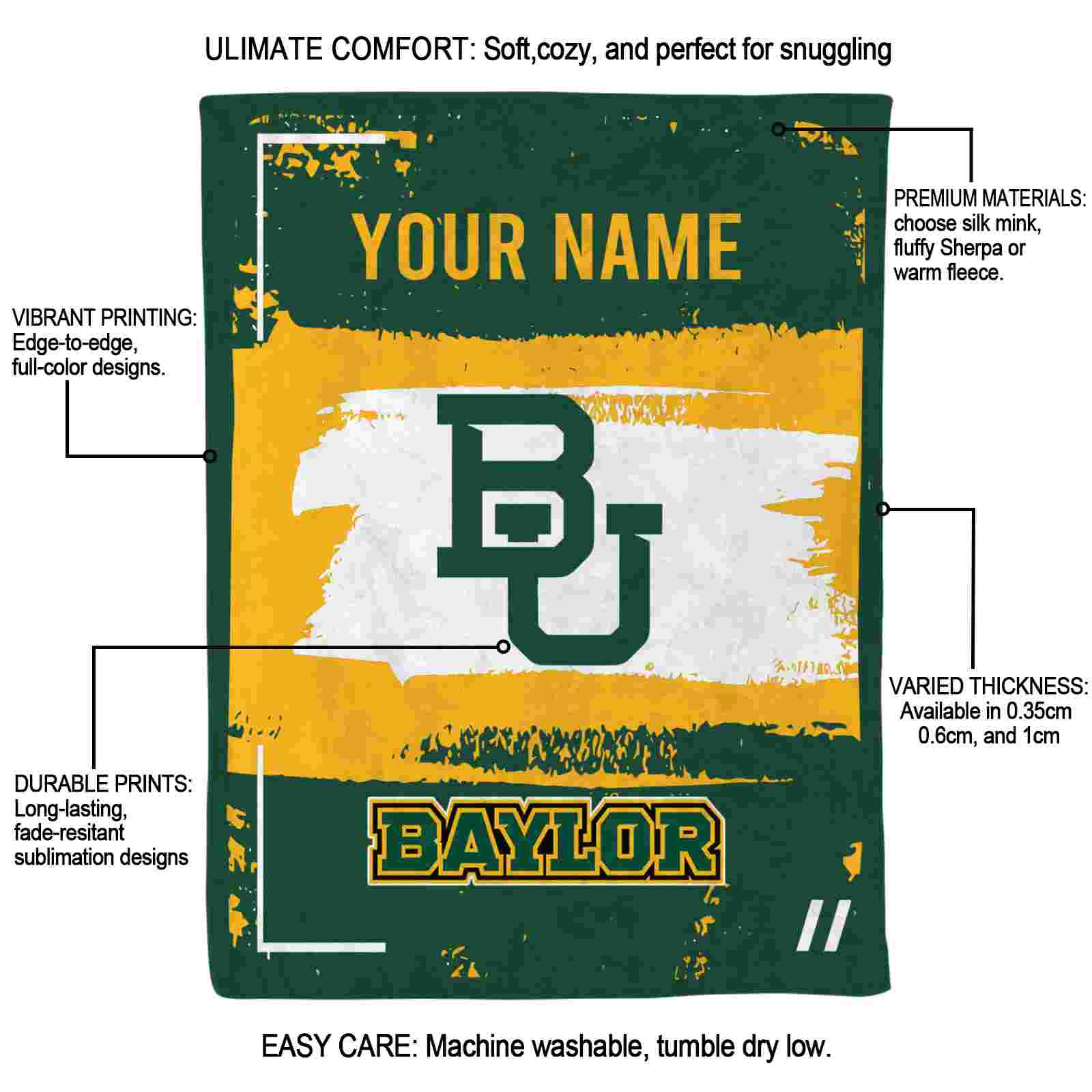 Customized Baylor Bears Paint Strokes Green White Blanket