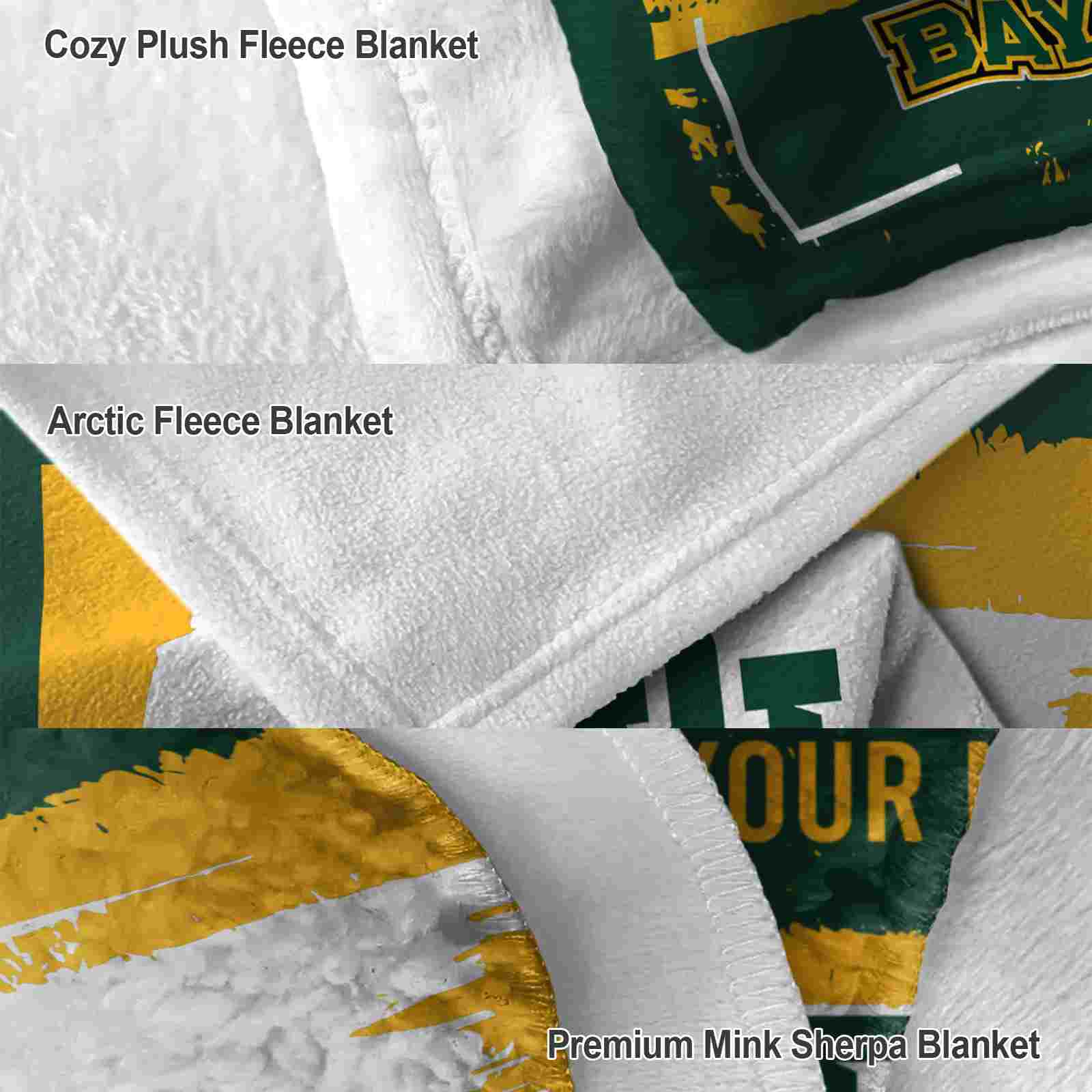 The Customized Baylor Bears Paint Strokes Green White Blanket isn’t just a blanket—it’s your connection to the game. Snuggle up while reliving legendary plays or dreaming of future championships. Its bold, team-inspired designs keep your love for the sport front and center, while its easy-care durability means it’s always ready for your next adventure. From cheering at home to showcasing your loyalty on the go, this item of NCAA Blankets collection is made for fans who live and breathe the game.