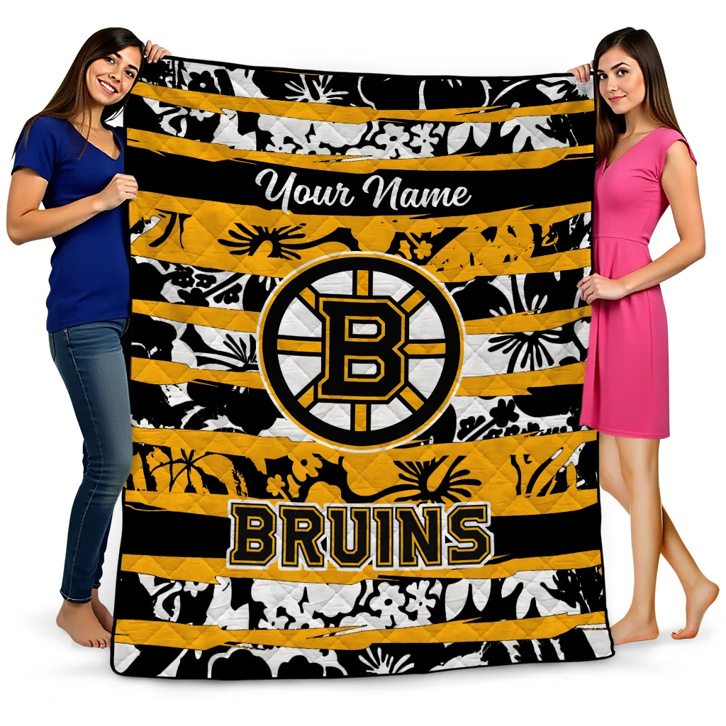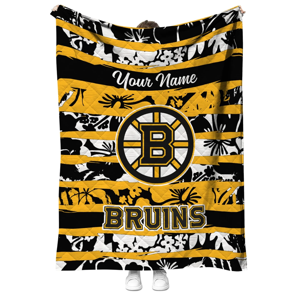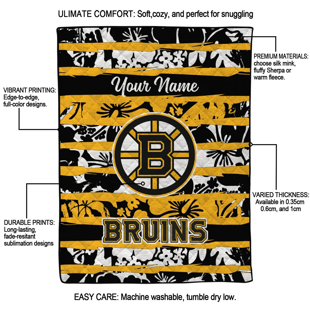 Wrap yourself in warmth and pride with the Customized Boston Bruins Layered Florals Gold White Quilt Blanket from the Boston Bruins Blankets collection at Yes That Blanket. Made from 100% premium quilting-weight polyester blended with a touch of microfiber, this quilt offers a smooth, soft finish you’ll love. Choose between two quilting styles—Stipple or Diagonal—and enjoy the comfort of a cotton-filled layer inside that adds extra coziness for every season. The border is available in classic black or white, giving your design a clean, timeless edge.