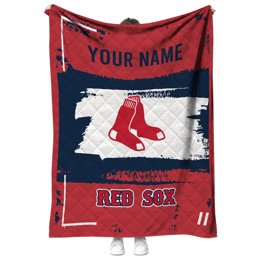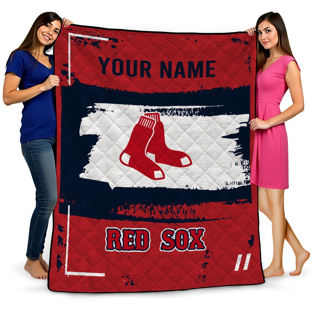 Customized Boston Red Sox Grunge Patch Red White Quilt Blanket