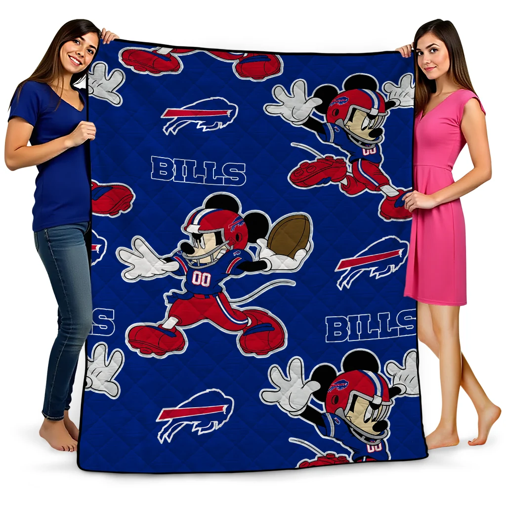 Customized Buffalo Bills Mickey Football Blue Quilt Blanket