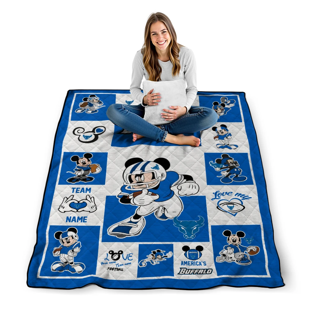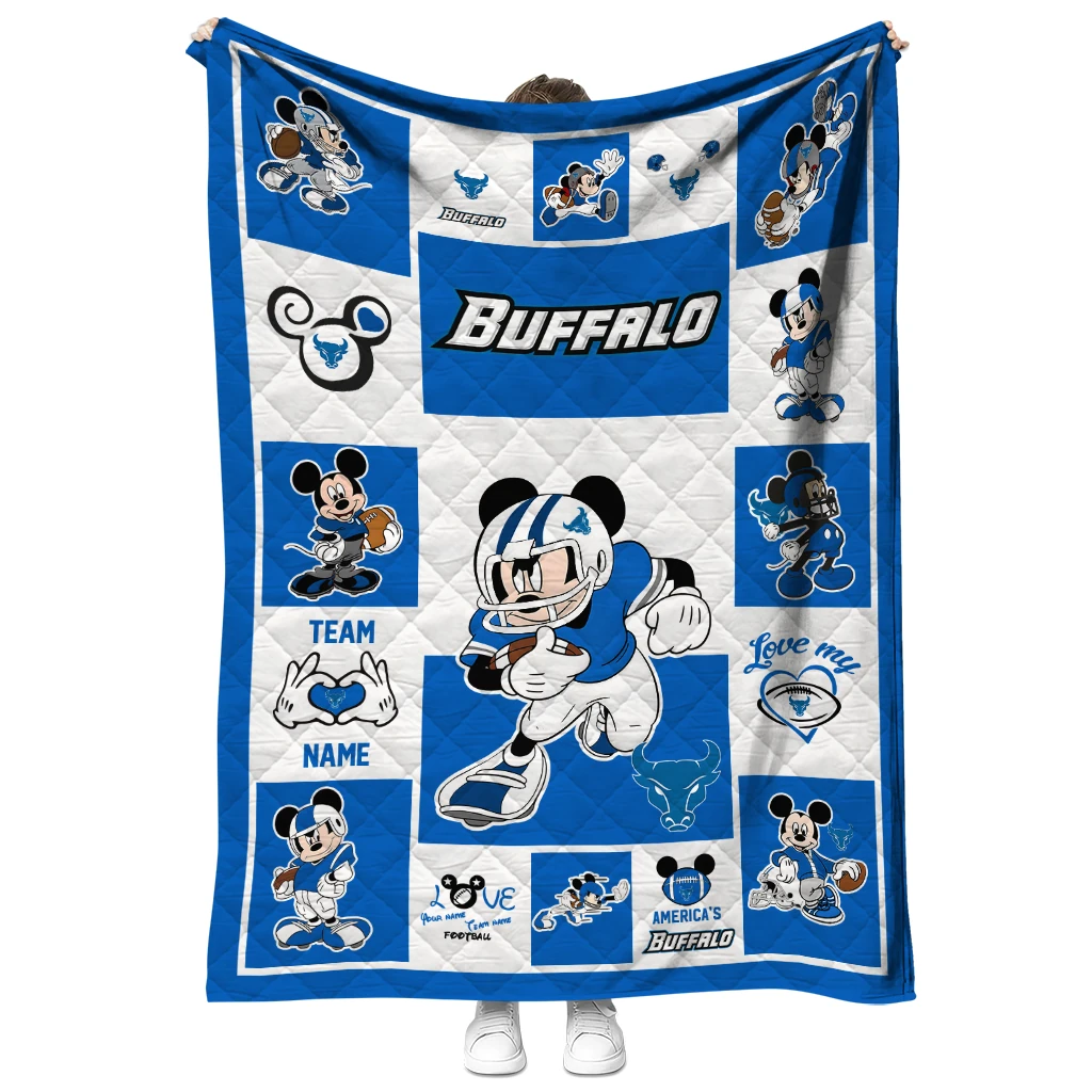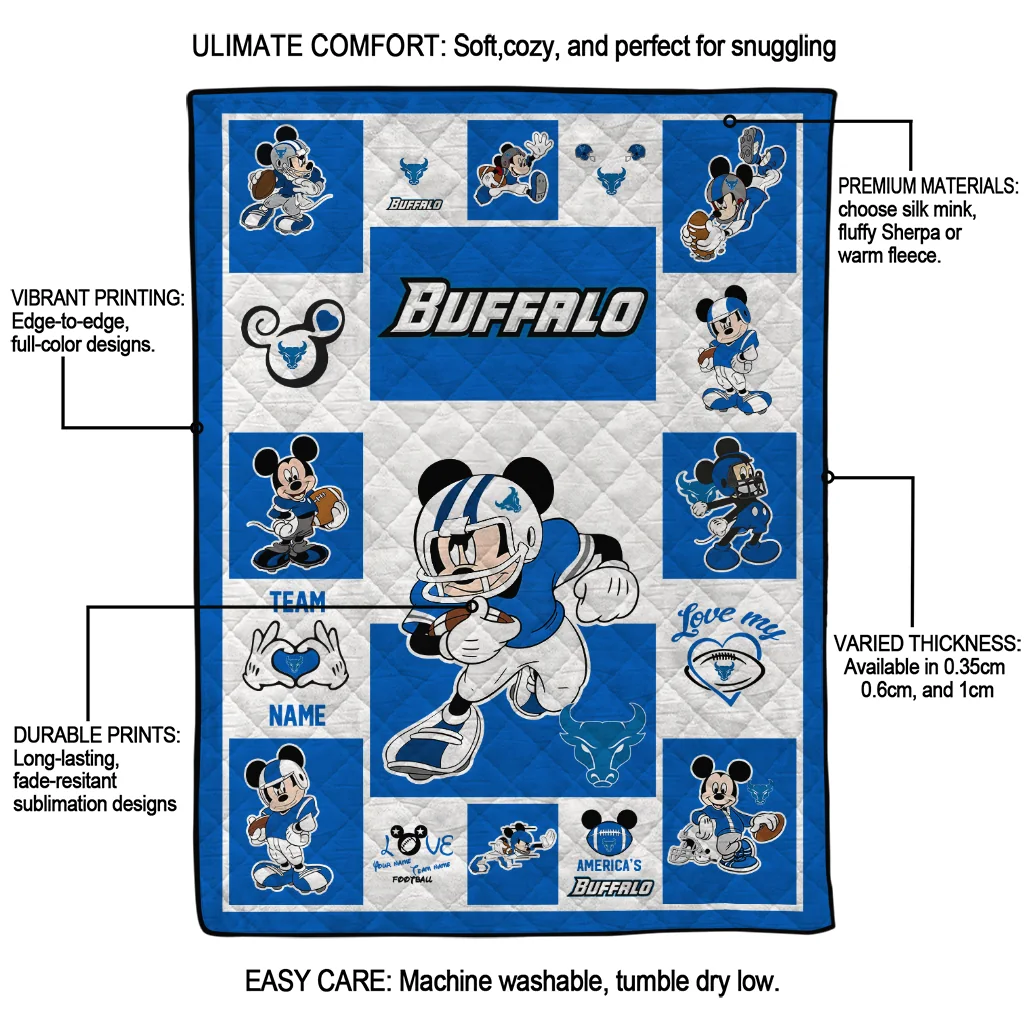 Customized Buffalo Bulls Mickey Crimson Royal Blue White Quilt Blanket
