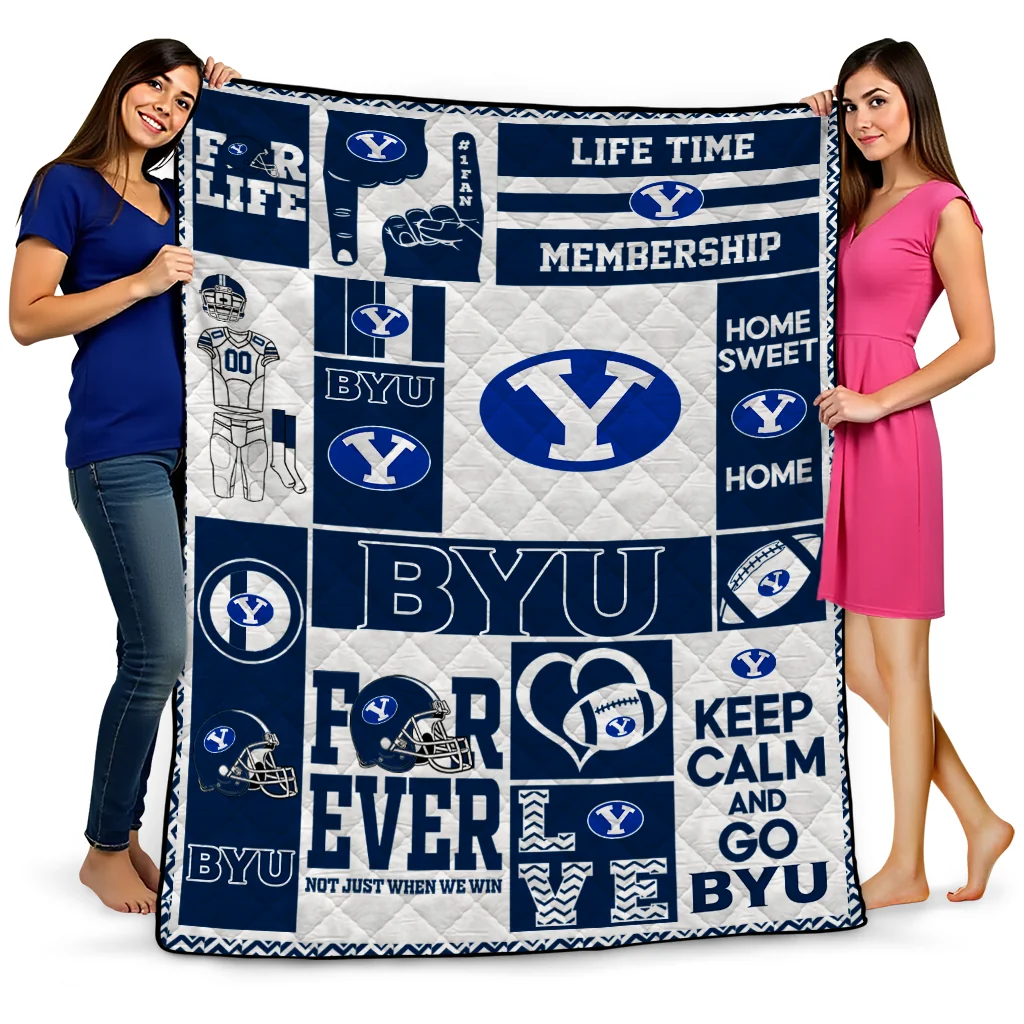 The Customized BYU Cougars Helmet Passion Blue Quilt Blanket is more than a blanket—it’s everyday comfort, thoughtfully made. Crafted from premium quilting fabric with a soft microfiber touch, it offers a smooth hand-feel and lasting coziness. Layered quilting with a cotton-filled core provides adaptable warmth across seasons while maintaining a clean, tailored look on your bed or sofa.