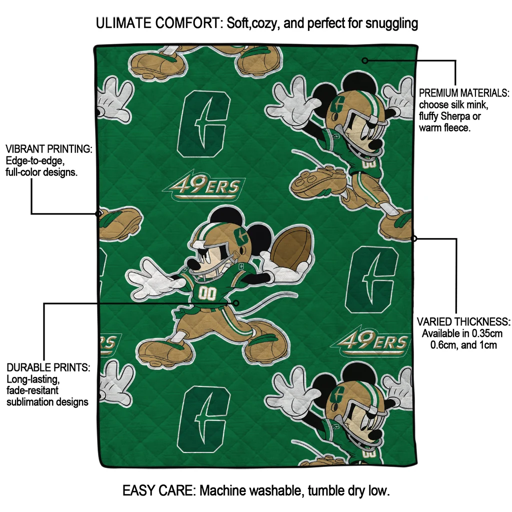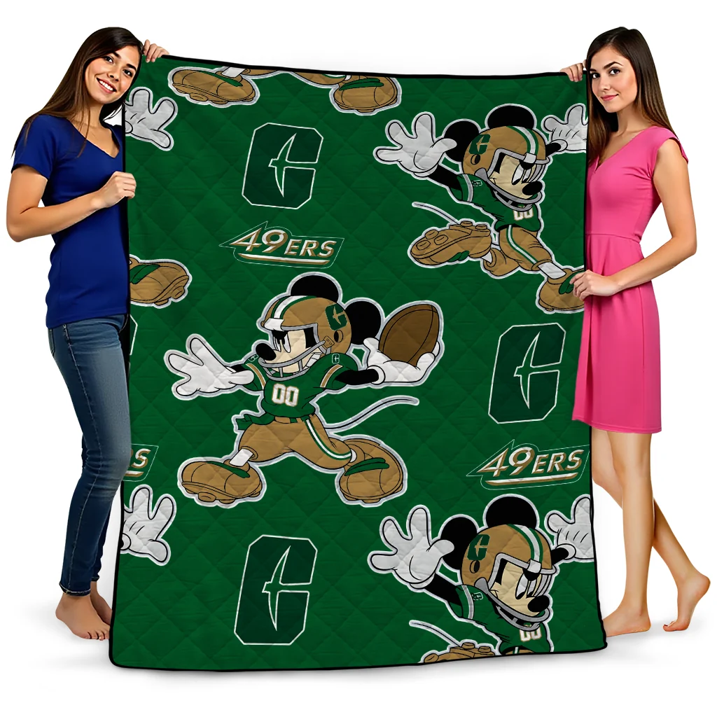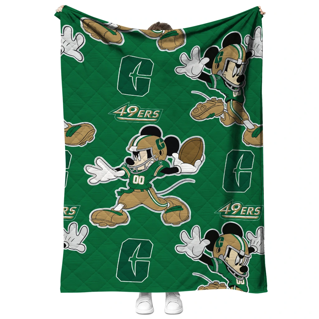 Customized Charlotte 49ers Mickey Football Green Quilt Blanket