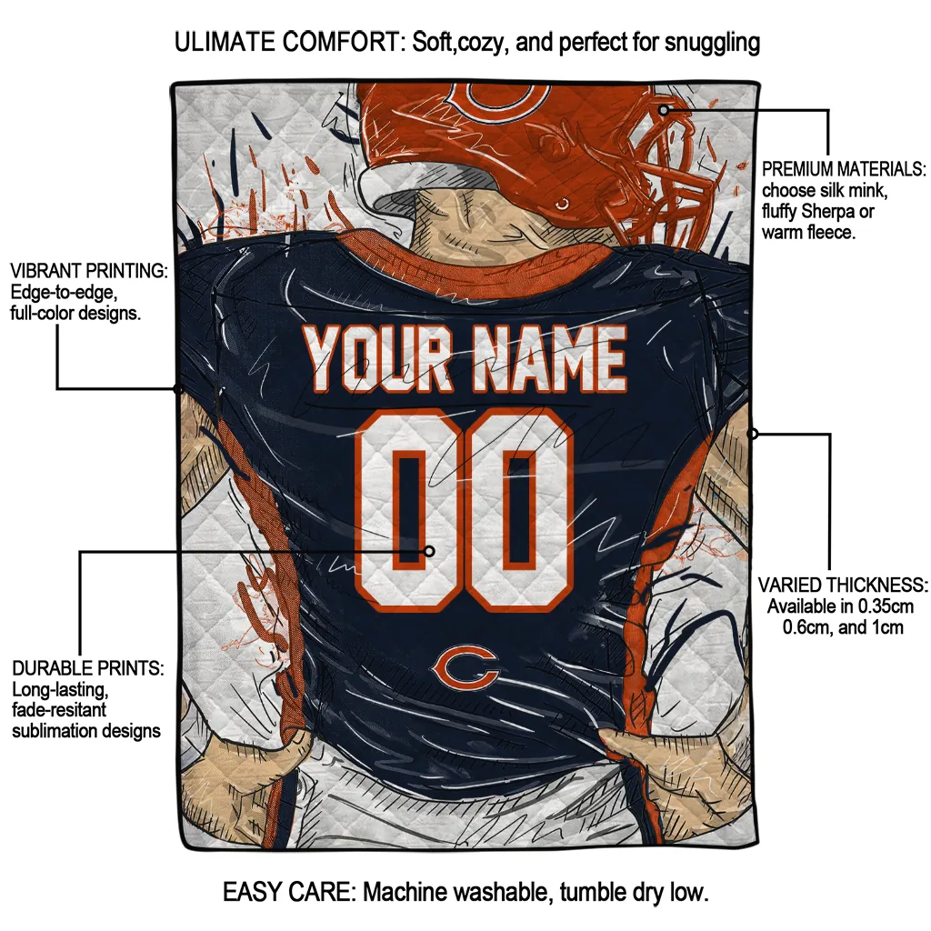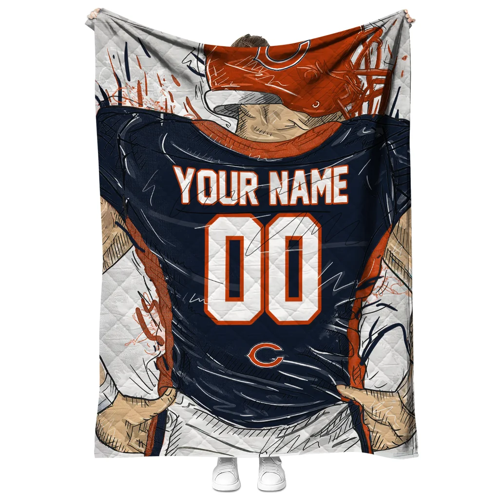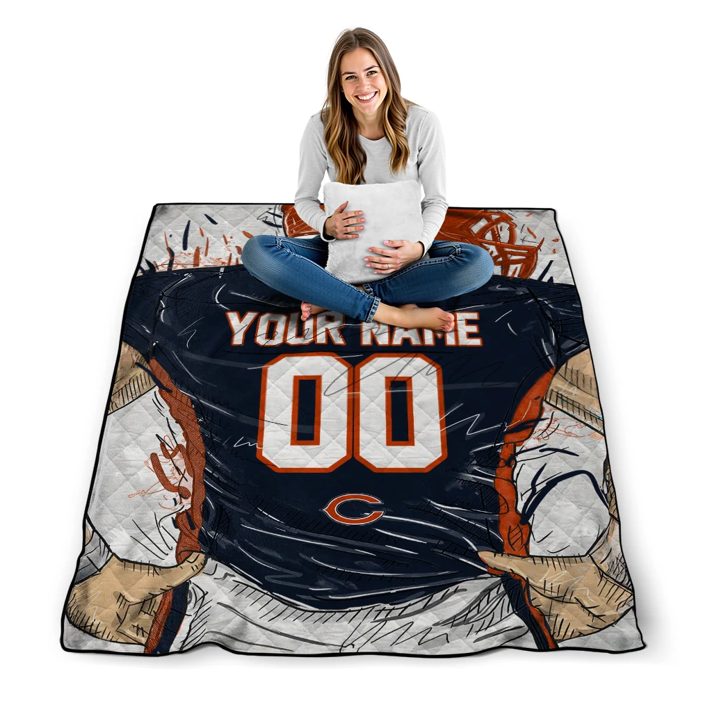 The Customized Chicago Bears Player Sketch Blue Gray Quilt Blanket is more than a blanket—it’s everyday comfort, thoughtfully made. Crafted from premium quilting fabric with a soft microfiber touch, it offers a smooth hand-feel and lasting coziness. Layered quilting with a cotton-filled core provides adaptable warmth across seasons while maintaining a clean, tailored look on your bed or sofa.