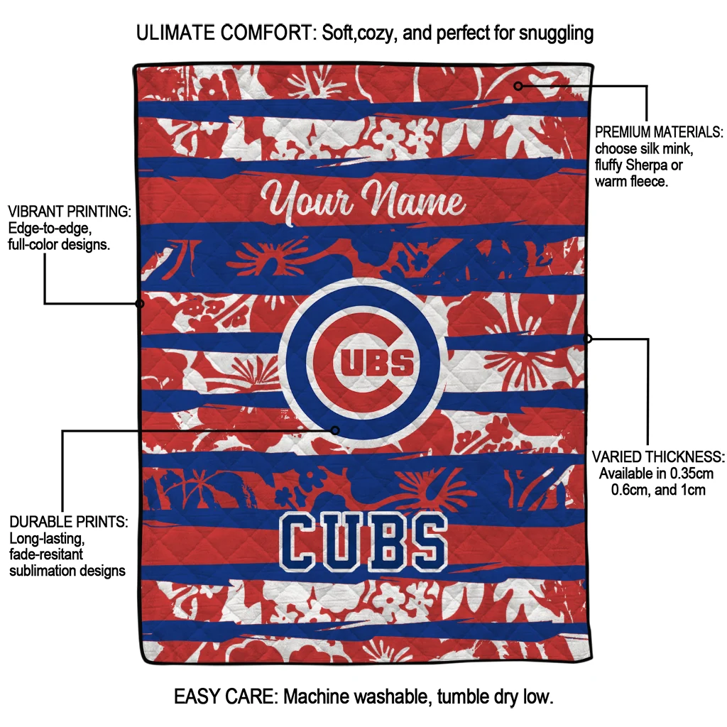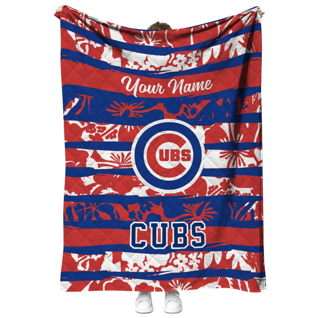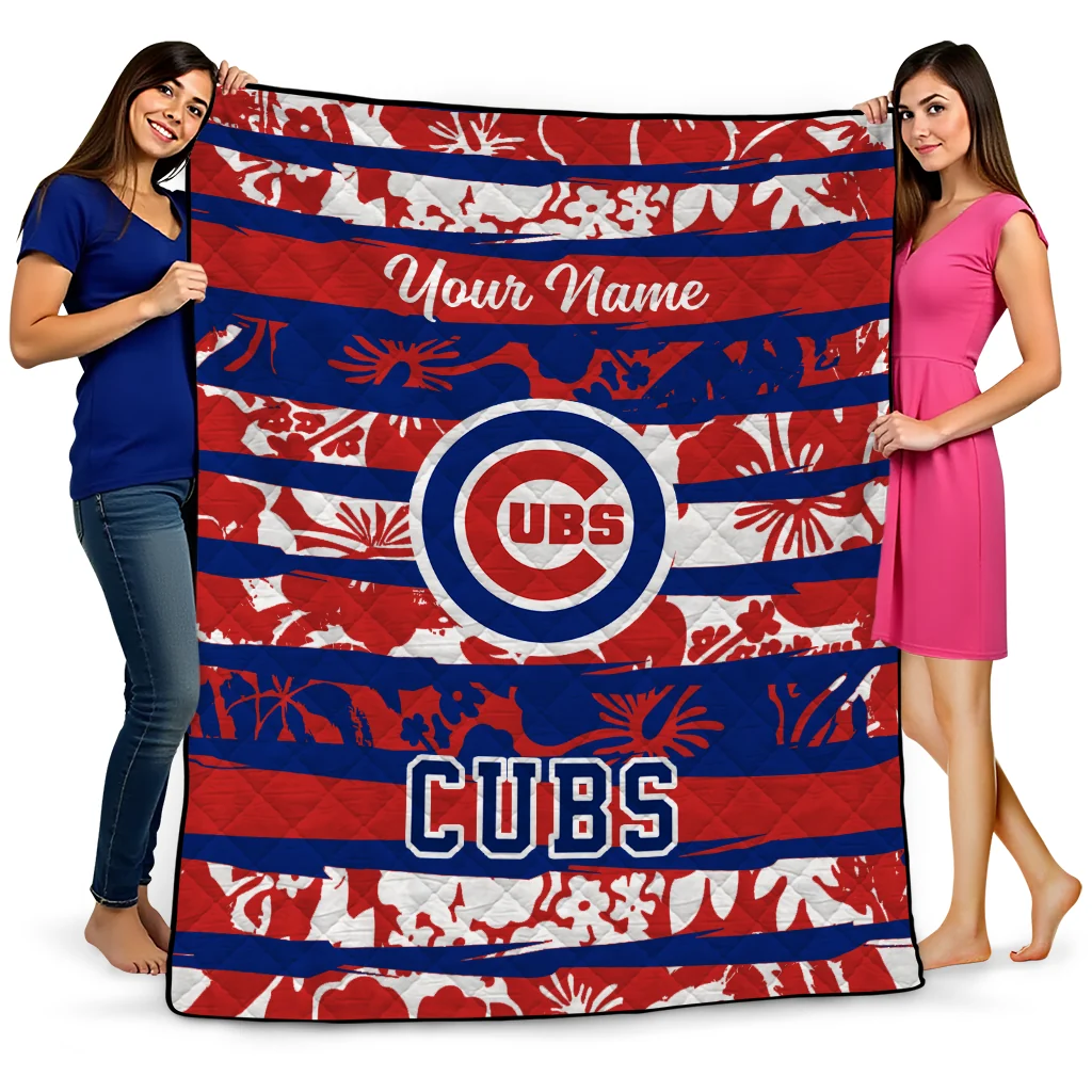 Customized Chicago Cubs Layered Florals Blue White Quilt Blanket