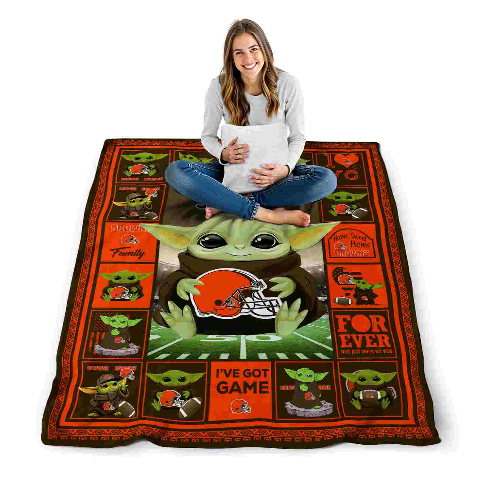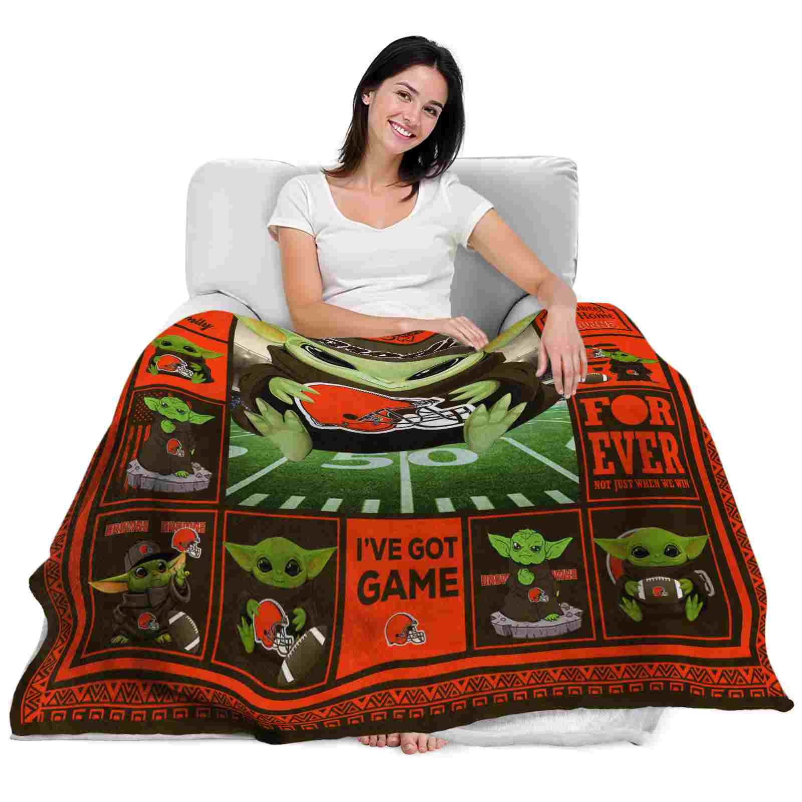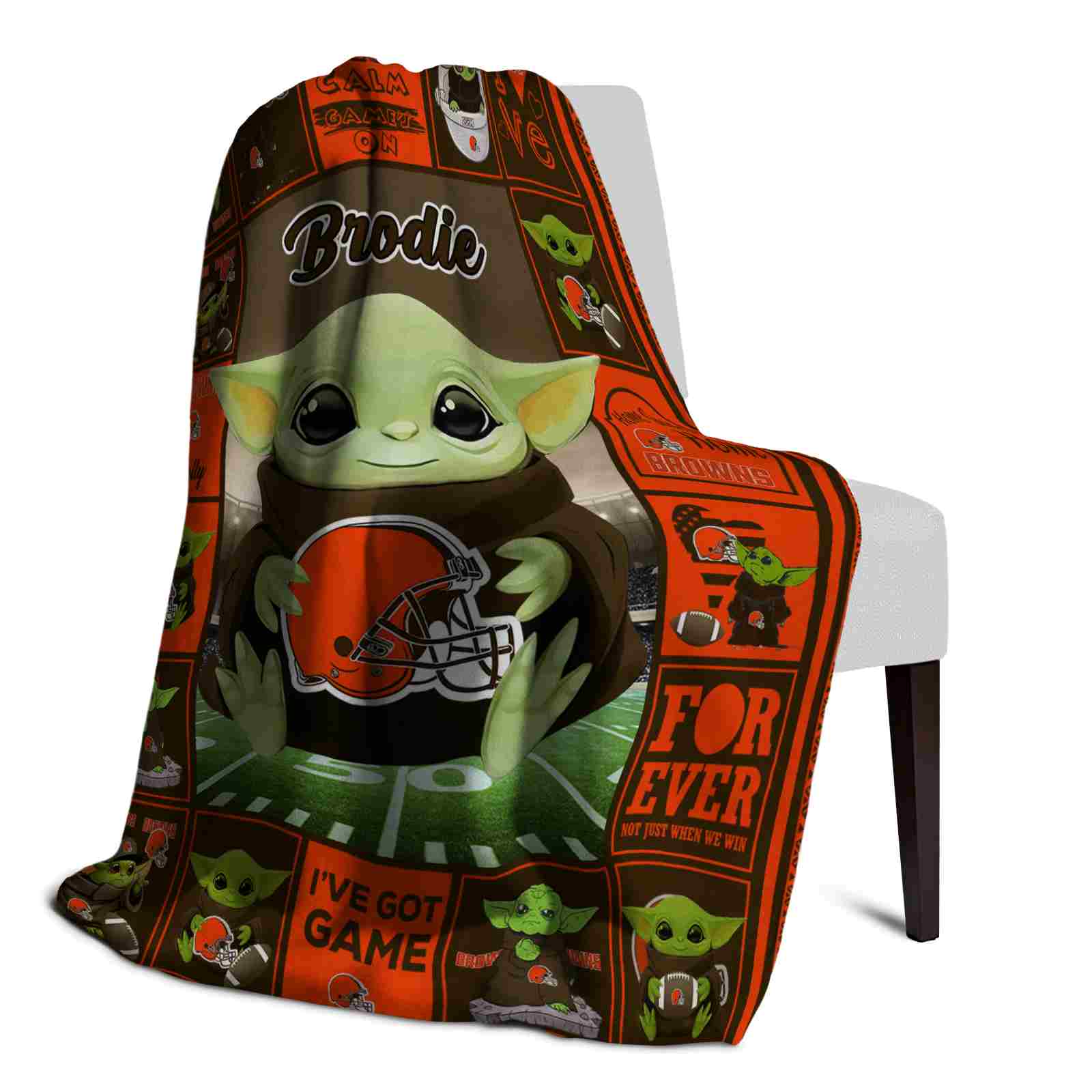 The Customized Cleveland Browns Baby Yoda Brown Blanket isn’t just a blanket—it’s your connection to the game. Snuggle up while reliving legendary plays or dreaming of future championships. Its bold, team-inspired designs keep your love for the sport front and center, while its easy-care durability means it’s always ready for your next adventure. From cheering at home to showcasing your loyalty on the go, this item of NFL Blankets collection is made for fans who live and breathe the game.