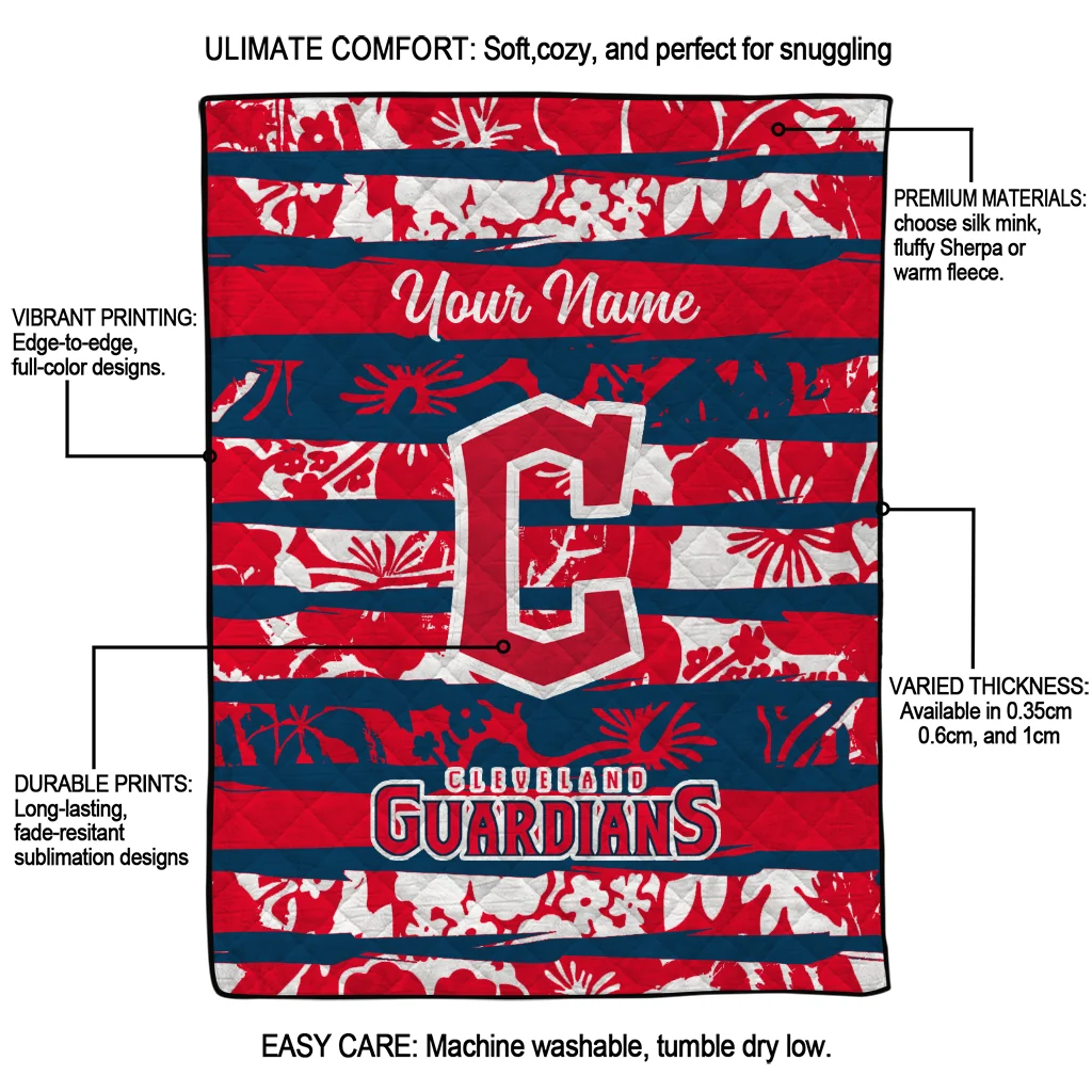 Wrap yourself in warmth and pride with the Customized Cleveland Guardians Layered Florals Navy Blue White Quilt Blanket from the Cleveland Guardians Blankets collection at Yes That Blanket. Made from 100% premium quilting-weight polyester blended with a touch of microfiber, this quilt offers a smooth, soft finish you’ll love. Choose between two quilting styles—Stipple or Diagonal—and enjoy the comfort of a cotton-filled layer inside that adds extra coziness for every season. The border is available in classic black or white, giving your design a clean, timeless edge.