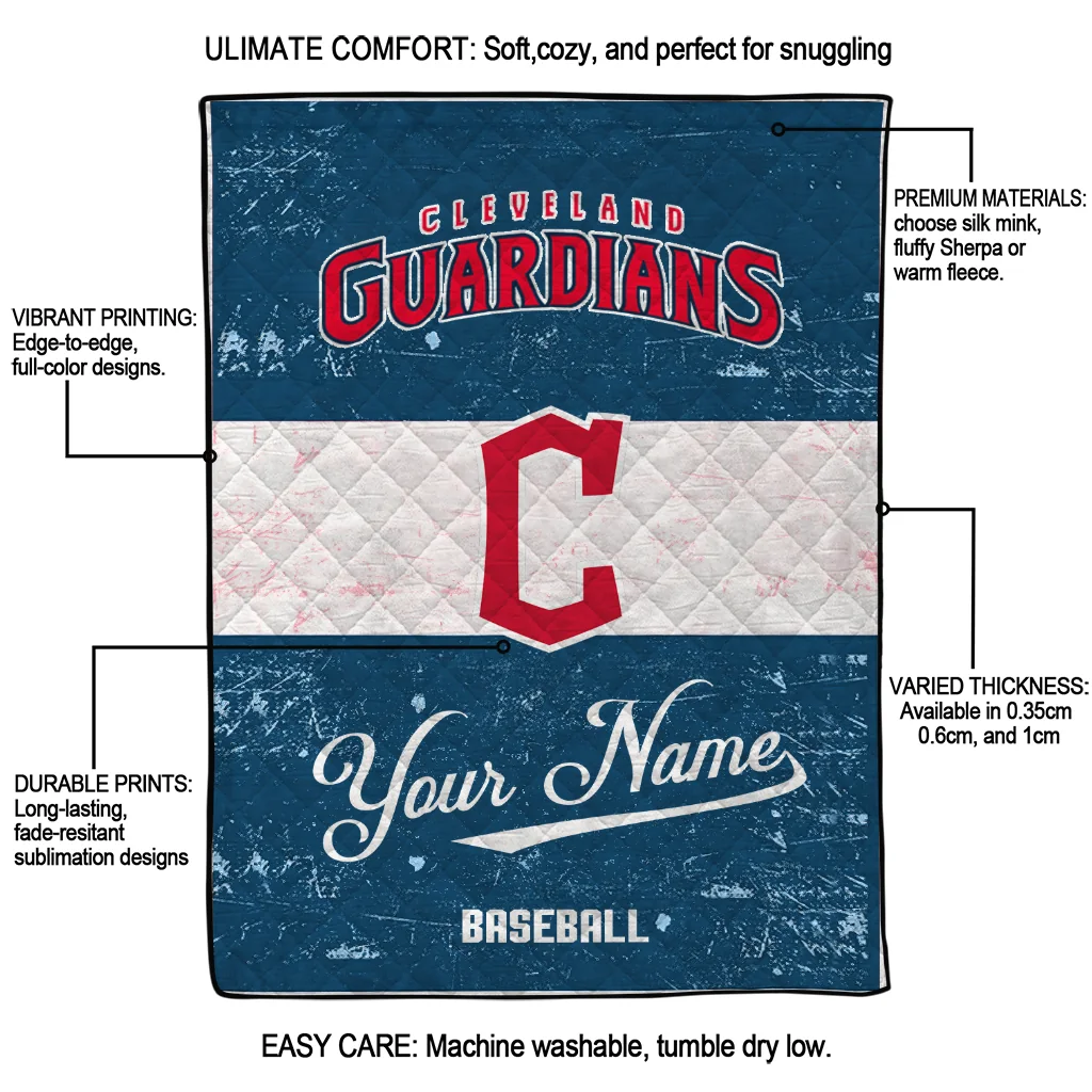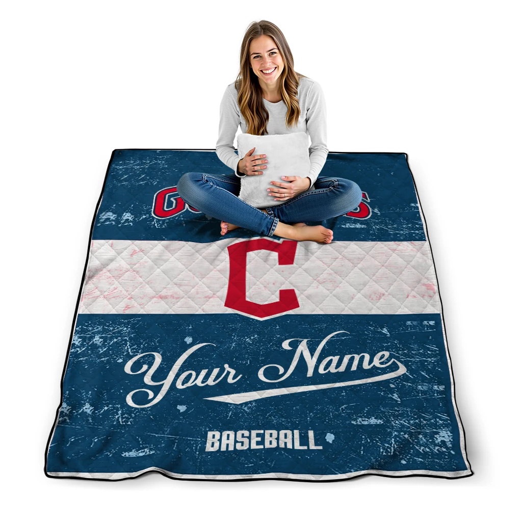 Wrap yourself in warmth and pride with the Customized Cleveland Guardians Snoopy Victory Navy Blue White Quilt Blanket from the Cleveland Guardians Blankets collection at Yes That Blanket. Made from 100% premium quilting-weight polyester blended with a touch of microfiber, this quilt offers a smooth, soft finish you’ll love. Choose between two quilting styles—Stipple or Diagonal—and enjoy the comfort of a cotton-filled layer inside that adds extra coziness for every season. The border is available in classic black or white, giving your design a clean, timeless edge.