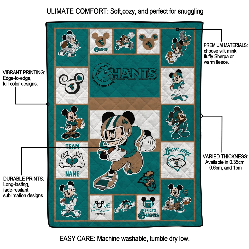 Customized Coastal Carolina Chanticleers Mickey Crimson Green White Quilt Blanket