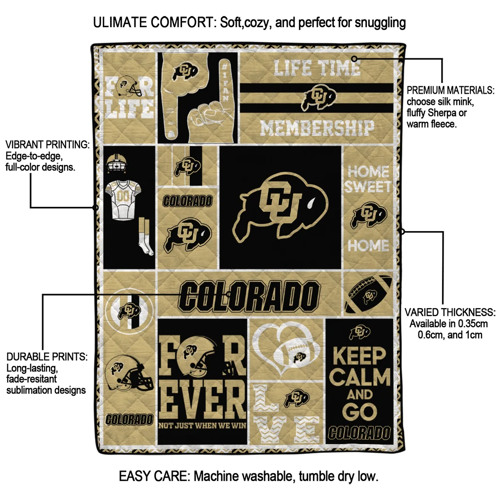 Customized Colorado Buffaloes Helmet Passion Gold Quilt Blanket