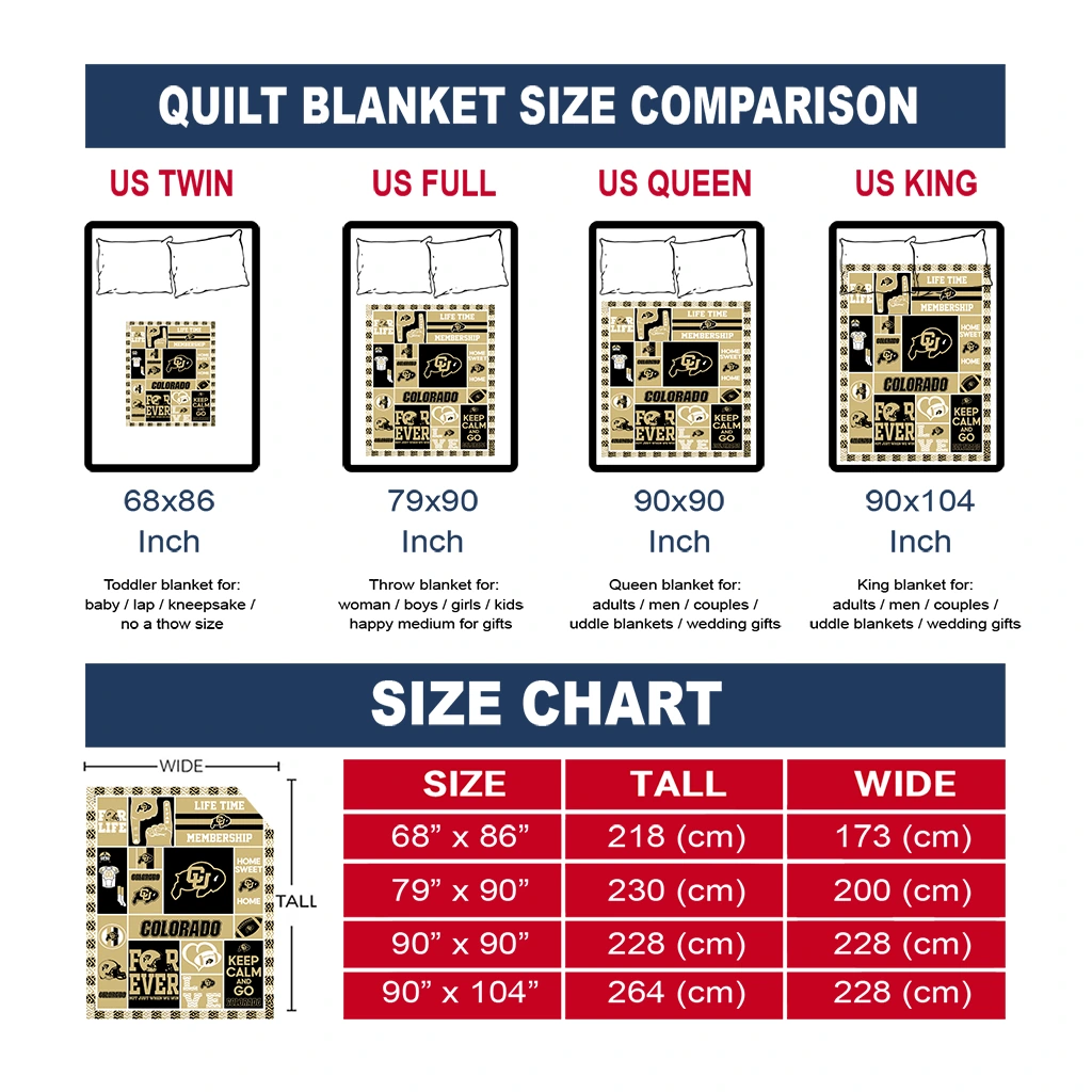 The Customized Colorado Buffaloes Helmet Passion Gold Quilt Blanket is more than a blanket—it’s everyday comfort, thoughtfully made. Crafted from premium quilting fabric with a soft microfiber touch, it offers a smooth hand-feel and lasting coziness. Layered quilting with a cotton-filled core provides adaptable warmth across seasons while maintaining a clean, tailored look on your bed or sofa.