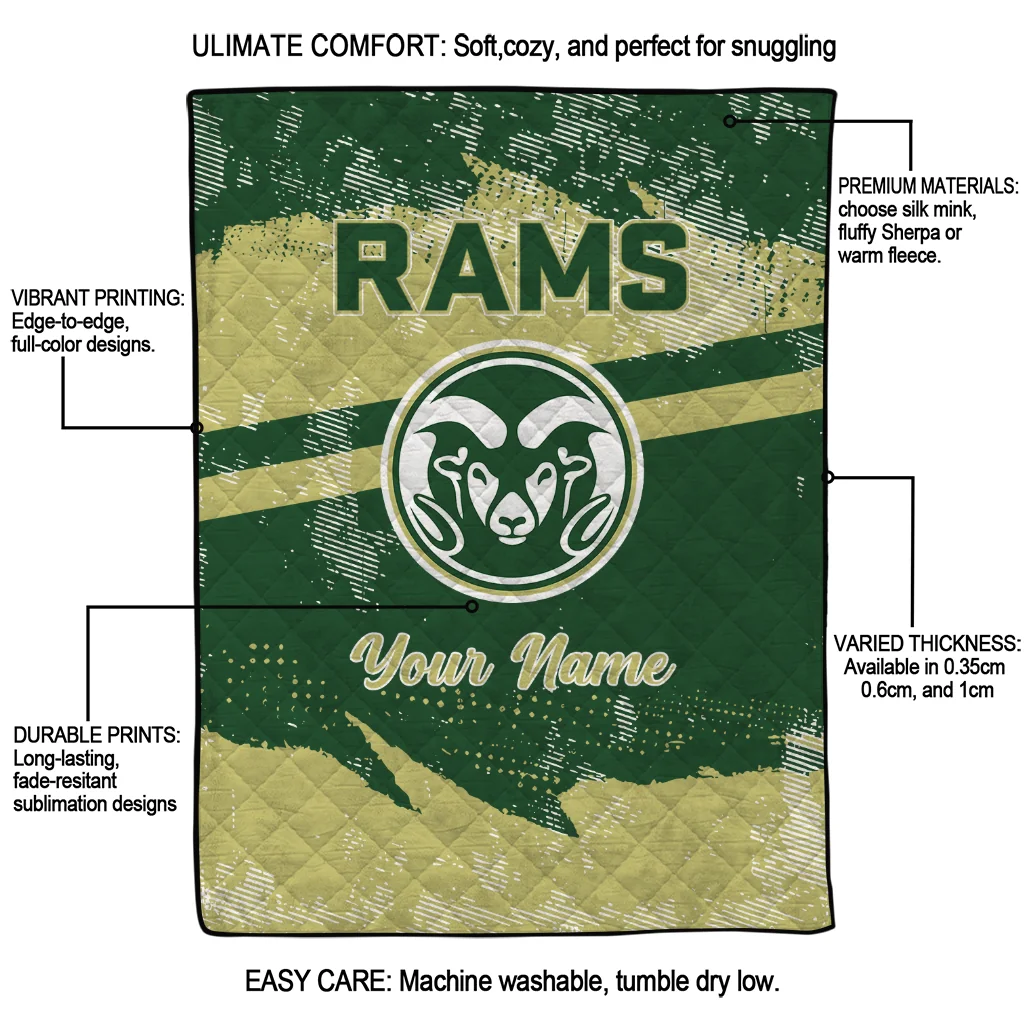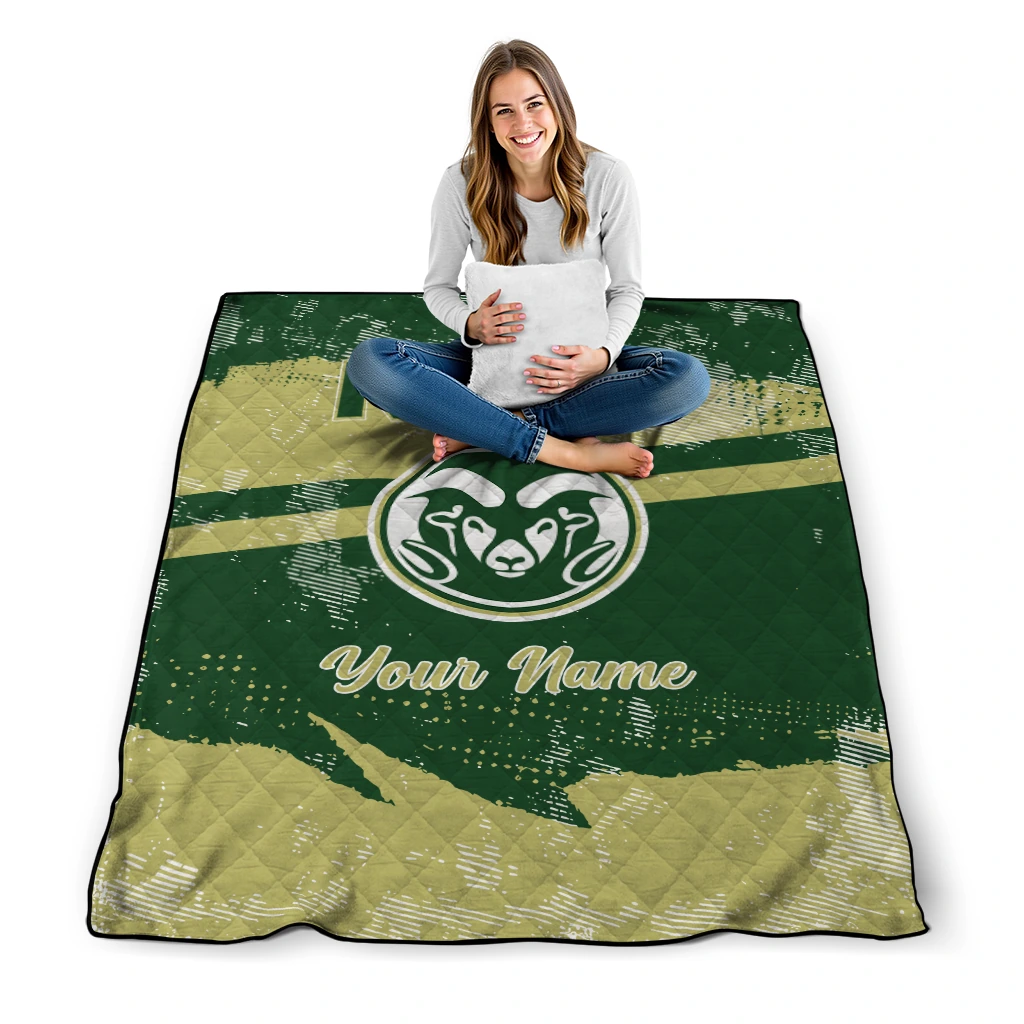 Customized Colorado State Rams Brushstroke Layers Green Quilt Blanket