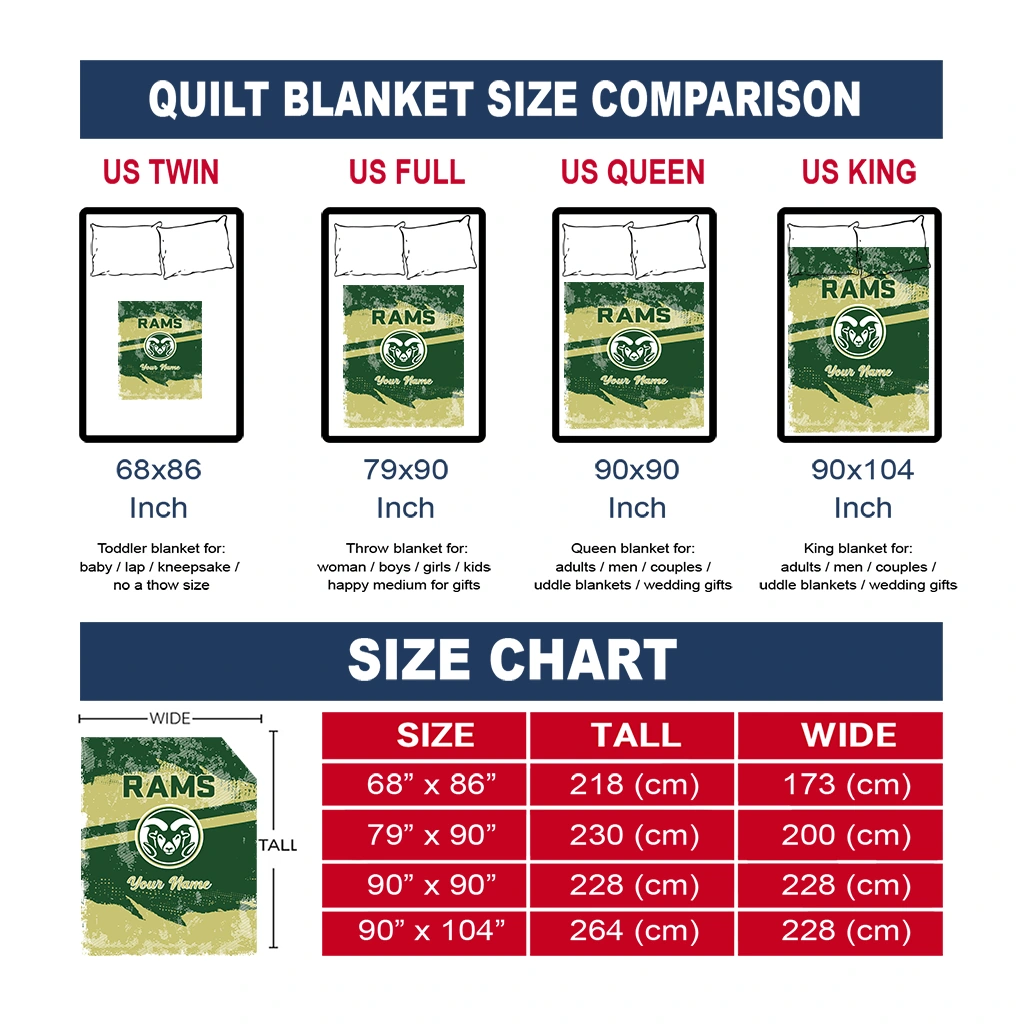 The Customized Colorado State Rams Brushstroke Layers Green Quilt Blanket is more than a blanket—it’s everyday comfort, thoughtfully made. Crafted from premium quilting fabric with a soft microfiber touch, it offers a smooth hand-feel and lasting coziness. Layered quilting with a cotton-filled core provides adaptable warmth across seasons while maintaining a clean, tailored look on your bed or sofa.