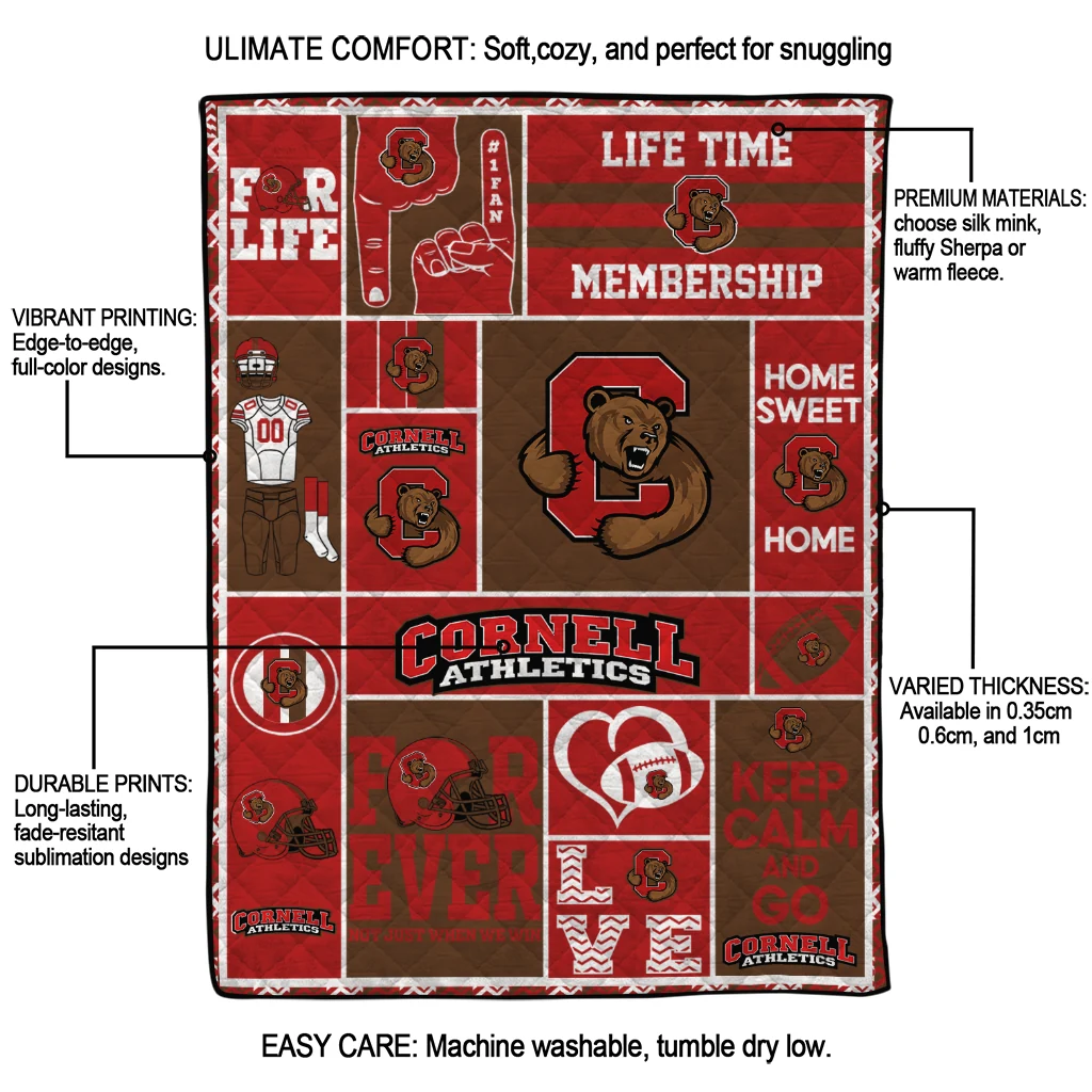 The Customized Cornell Big Red Helmet Passion Red Quilt Blanket is more than a blanket—it’s everyday comfort, thoughtfully made. Crafted from premium quilting fabric with a soft microfiber touch, it offers a smooth hand-feel and lasting coziness. Layered quilting with a cotton-filled core provides adaptable warmth across seasons while maintaining a clean, tailored look on your bed or sofa.