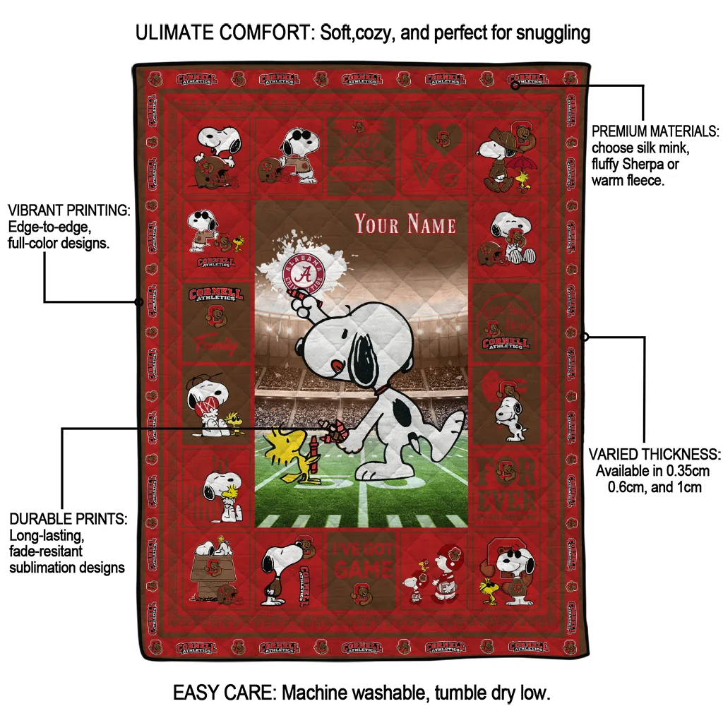 Customized Cornell Big Red Snoopy Coach Red Quilt Blanket