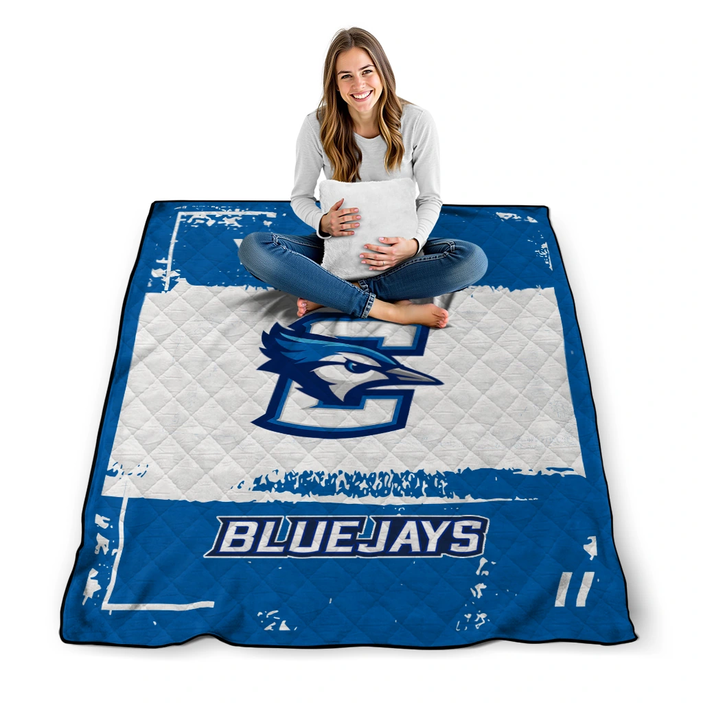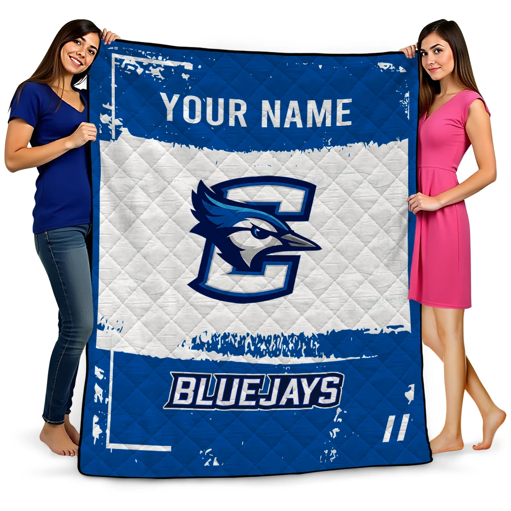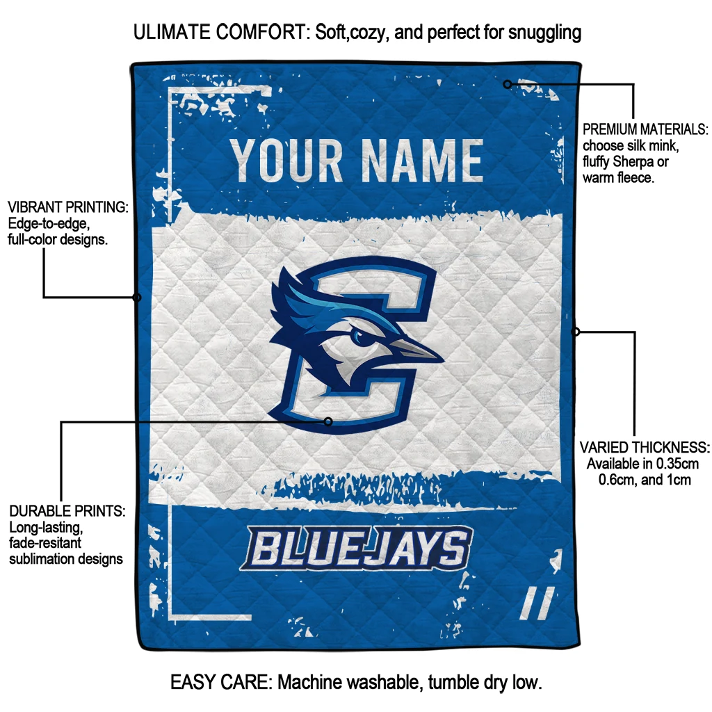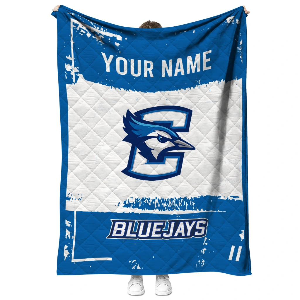 Customized Creighton Bluejays Grunge Patch Blue White Quilt Blanket