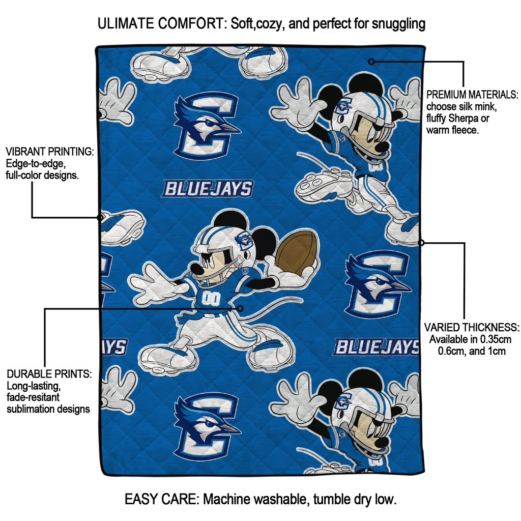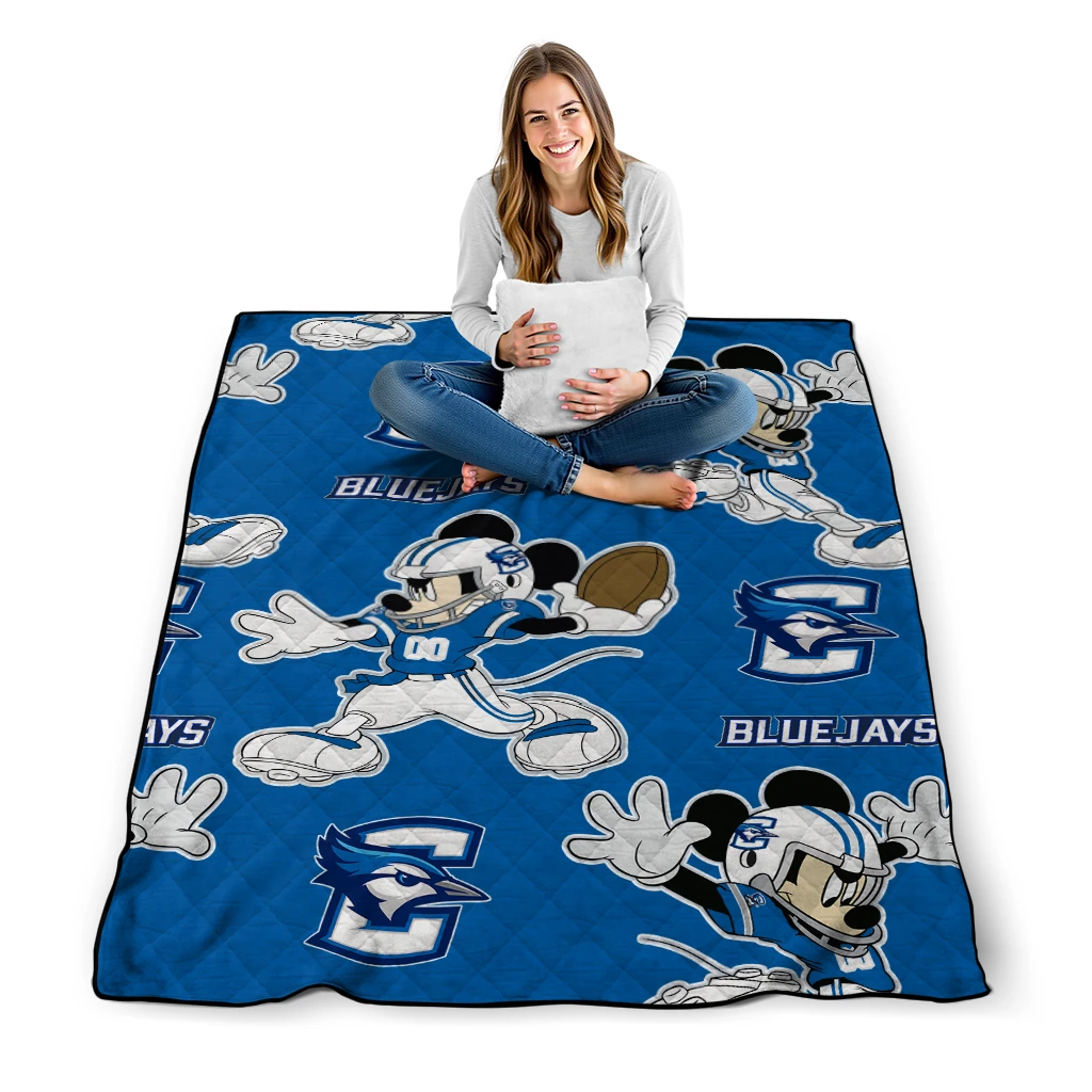 Wrap yourself in warmth and pride with the Customized Creighton Bluejays Mickey Football Blue Quilt Blanket from the Creighton Bluejays Blankets collection at Yes That Blanket. Made from 100% premium quilting-weight polyester blended with a touch of microfiber, this quilt offers a smooth, soft finish you’ll love. Choose between two quilting styles—Stipple or Diagonal—and enjoy the comfort of a cotton-filled layer inside that adds extra coziness for every season. The border is available in classic black or white, giving your design a clean, timeless edge.