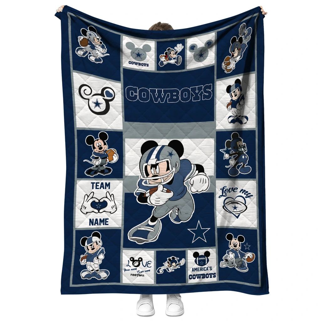 Customized Dallas Cowboys Mickey Crimson Blue White Quilt Blanket
