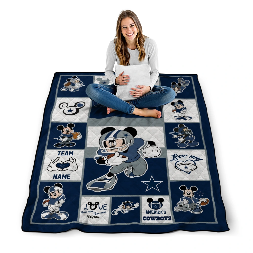 The Customized Dallas Cowboys Mickey Crimson Blue White Quilt Blanket is more than a blanket—it’s everyday comfort, thoughtfully made. Crafted from premium quilting fabric with a soft microfiber touch, it offers a smooth hand-feel and lasting coziness. Layered quilting with a cotton-filled core provides adaptable warmth across seasons while maintaining a clean, tailored look on your bed or sofa.