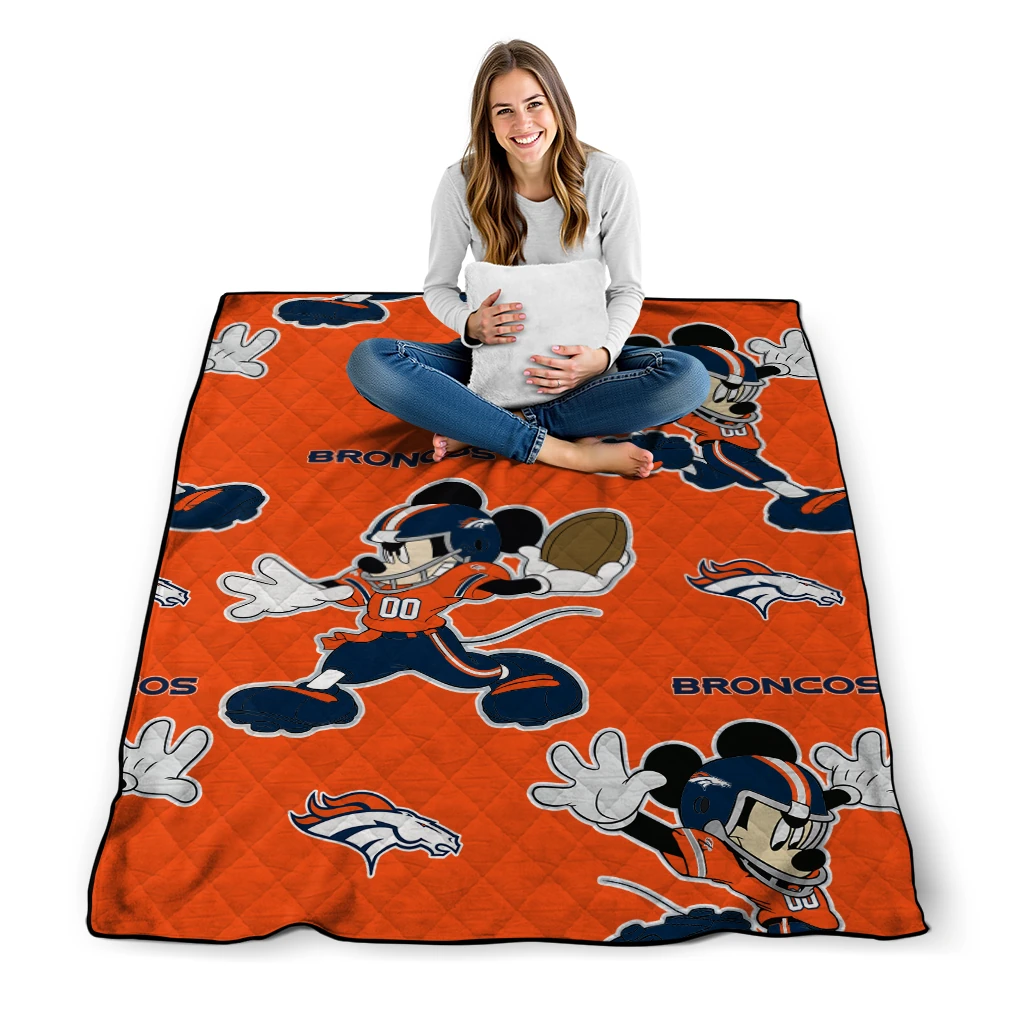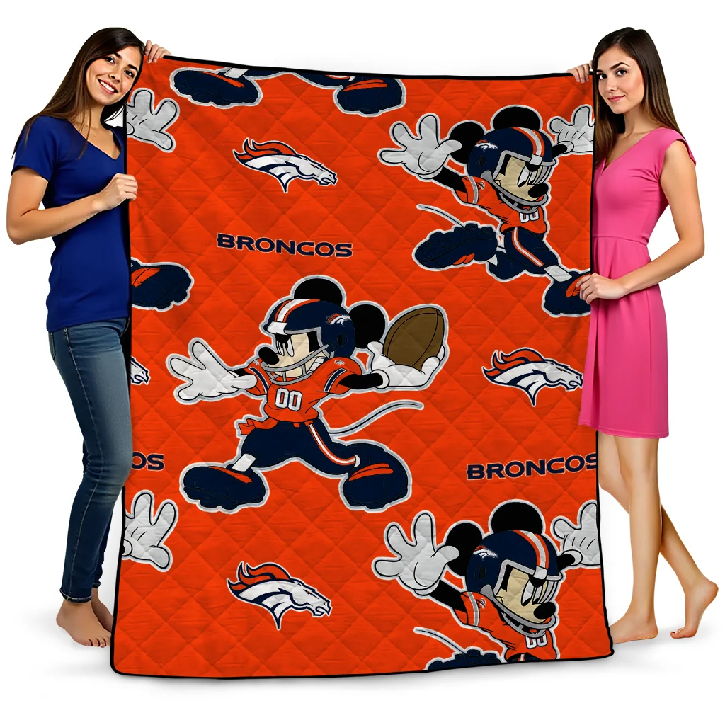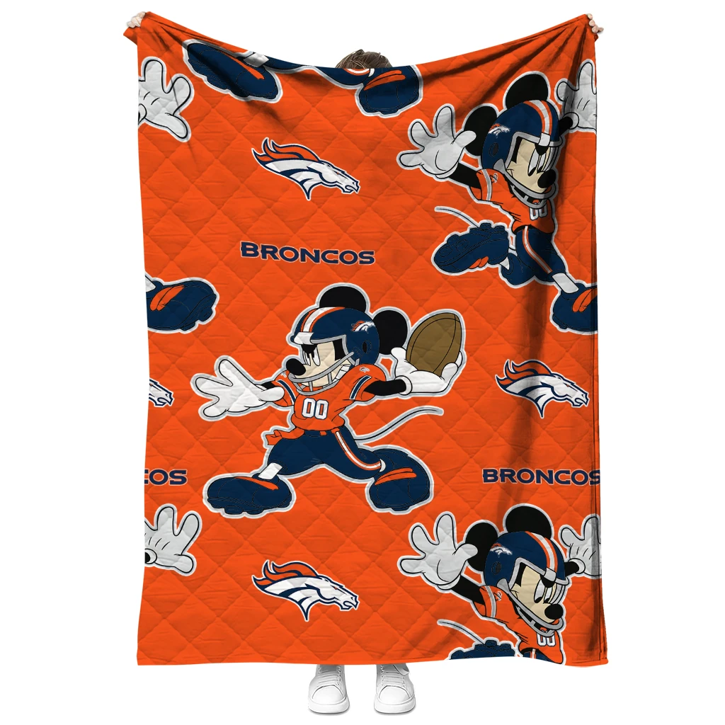 Customized Denver Broncos Mickey Football Orange Quilt Blanket