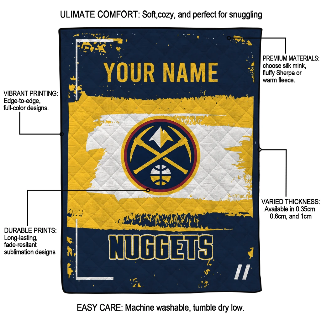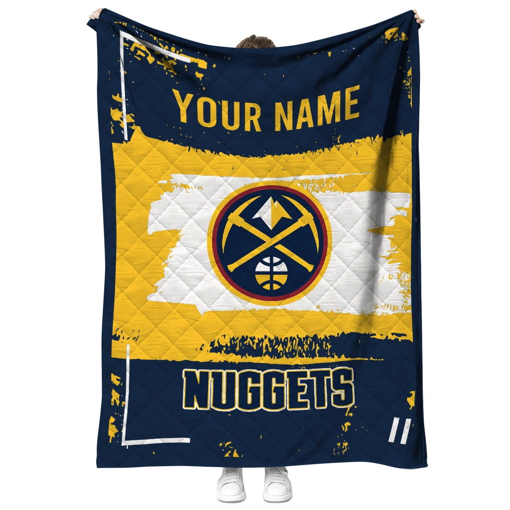 Customized Denver Nuggets Grunge Patch Blue White Quilt Blanket