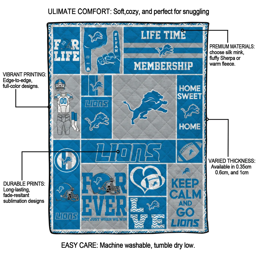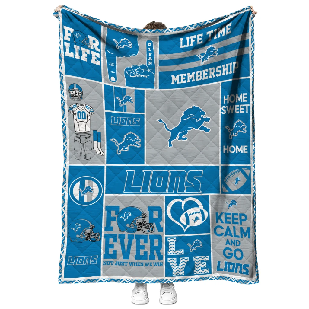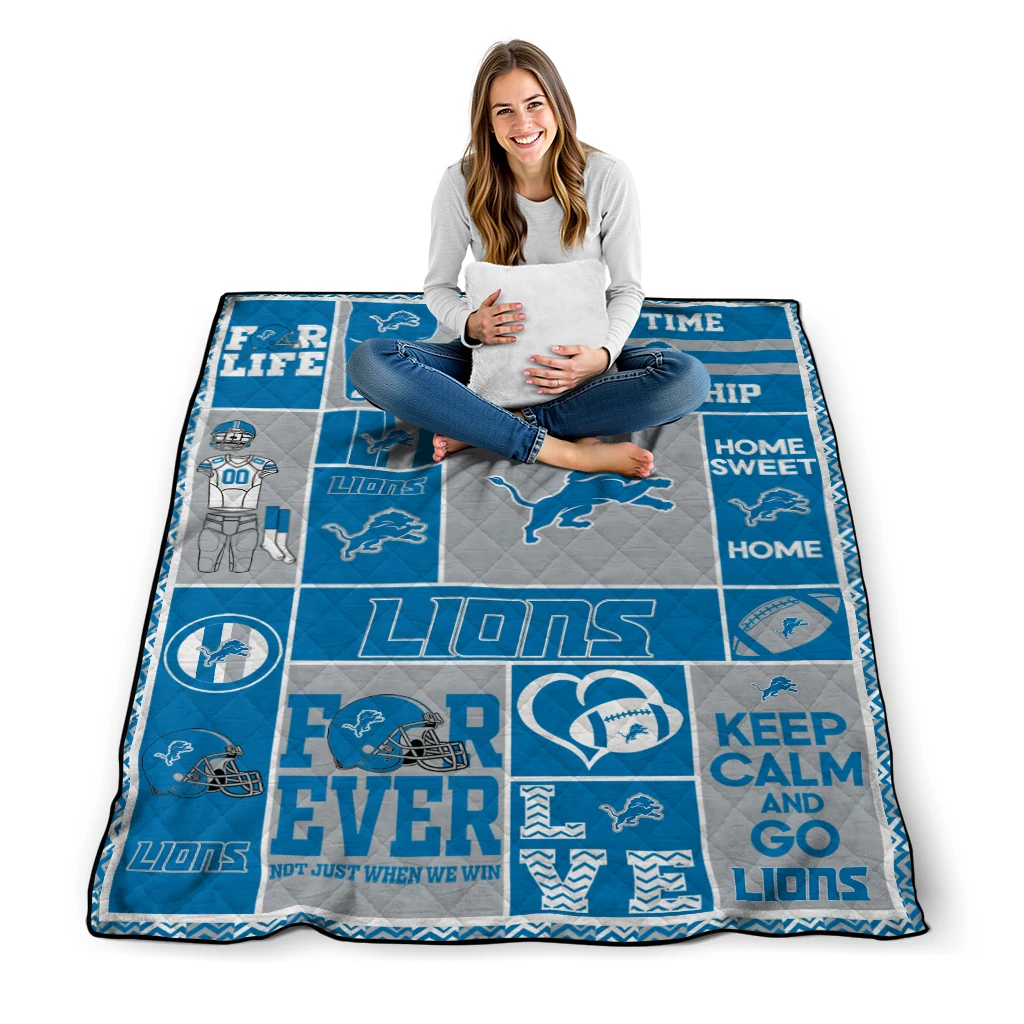 The Customized Detroit Lions Helmet Passion Blue Quilt Blanket is more than a blanket—it’s everyday comfort, thoughtfully made. Crafted from premium quilting fabric with a soft microfiber touch, it offers a smooth hand-feel and lasting coziness. Layered quilting with a cotton-filled core provides adaptable warmth across seasons while maintaining a clean, tailored look on your bed or sofa.