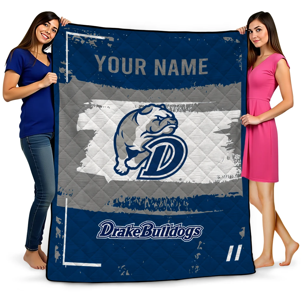 Customized Drake Bulldogs Grunge Patch Blue White Quilt Blanket