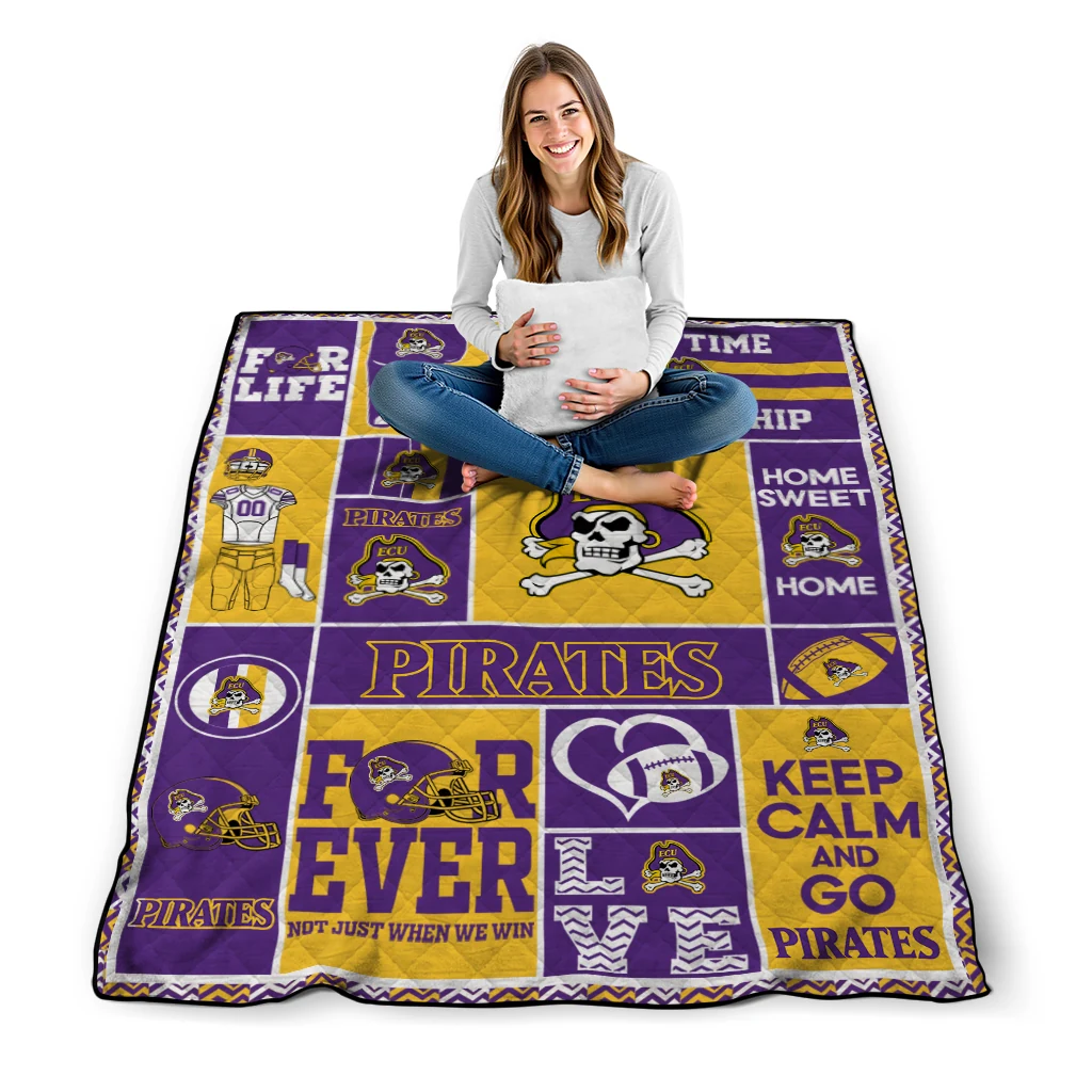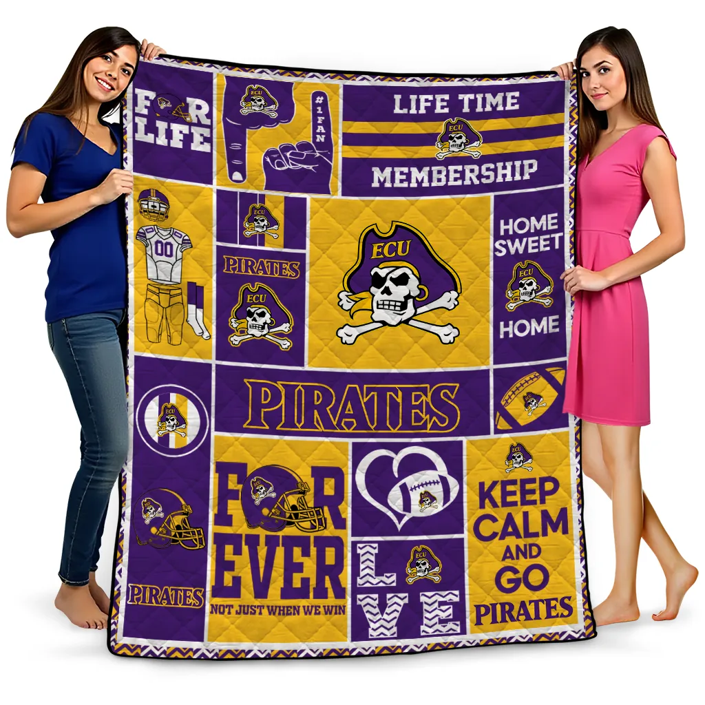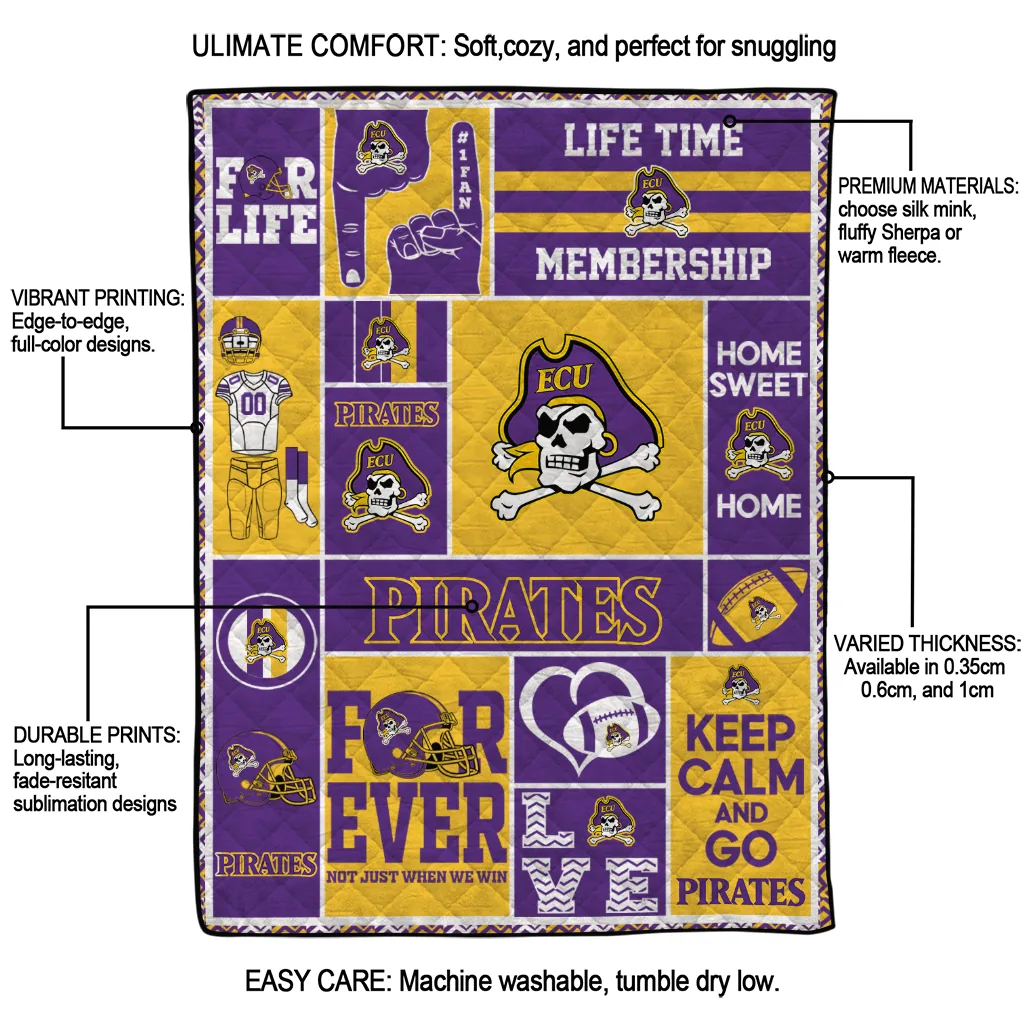 Customized East Carolina Pirates Helmet Passion Purple Quilt Blanket