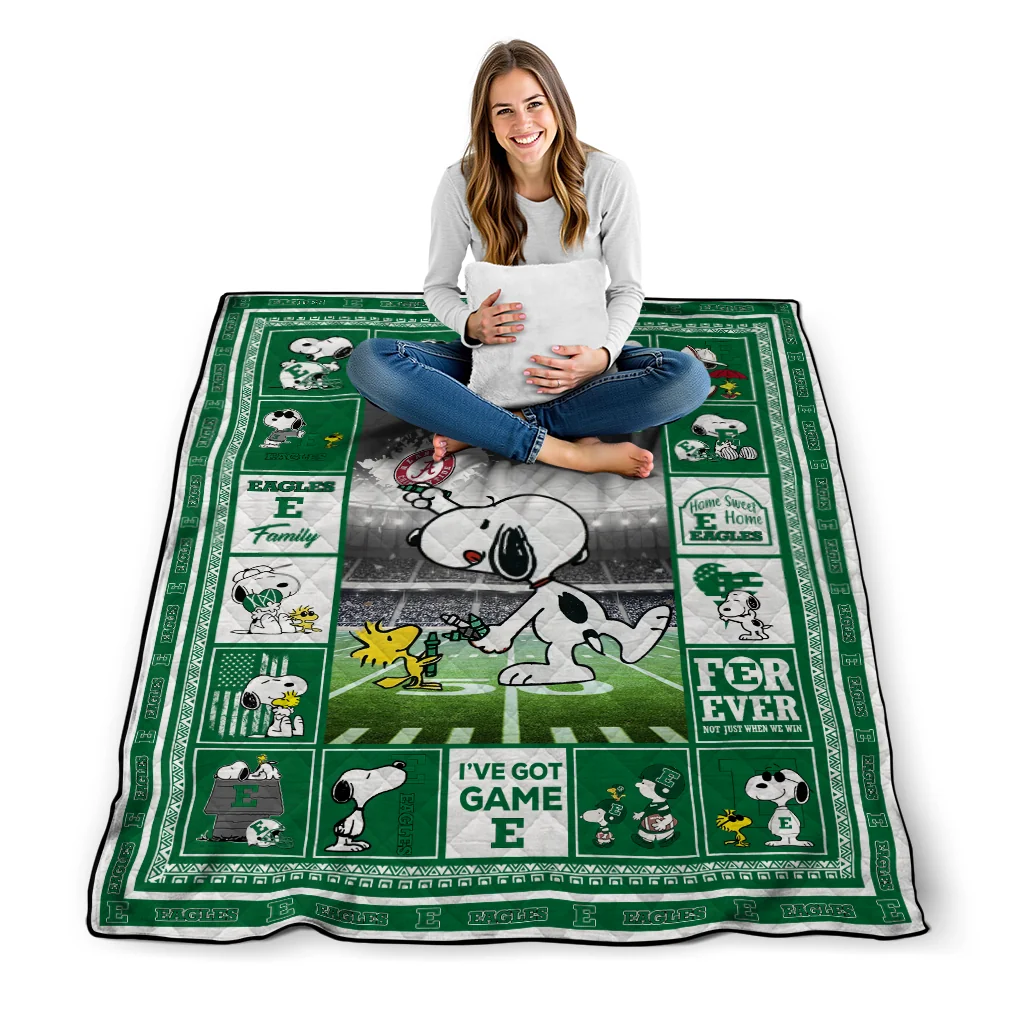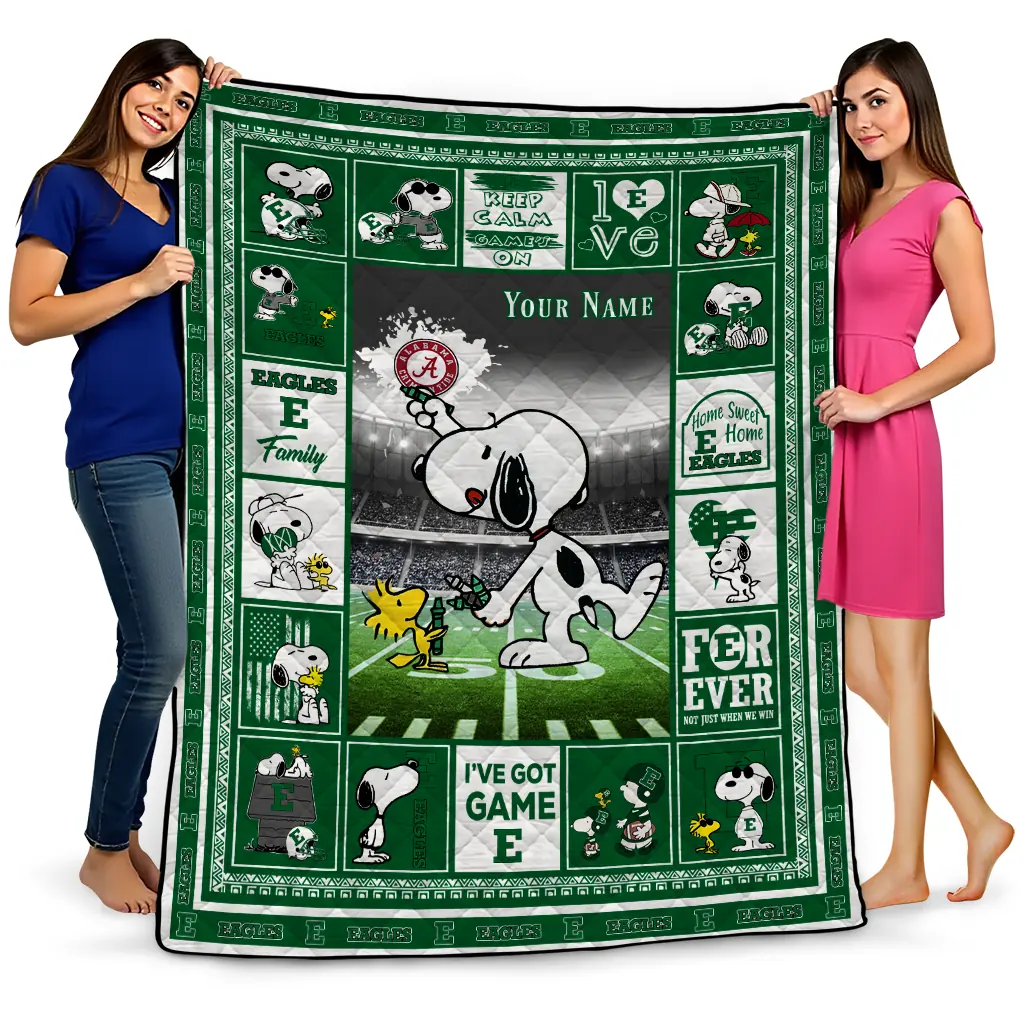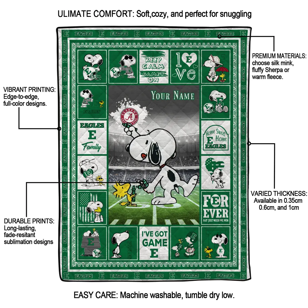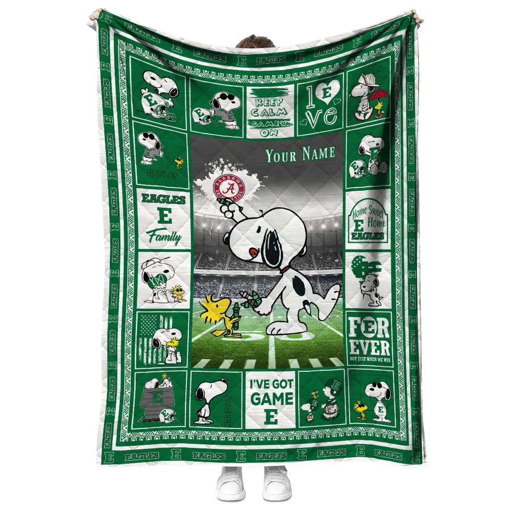 Customized Eastern Michigan Eagles Snoopy Coach Green Quilt Blanket