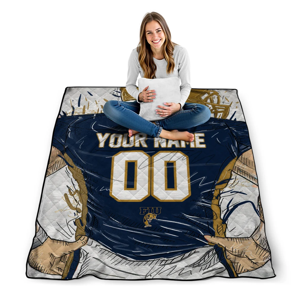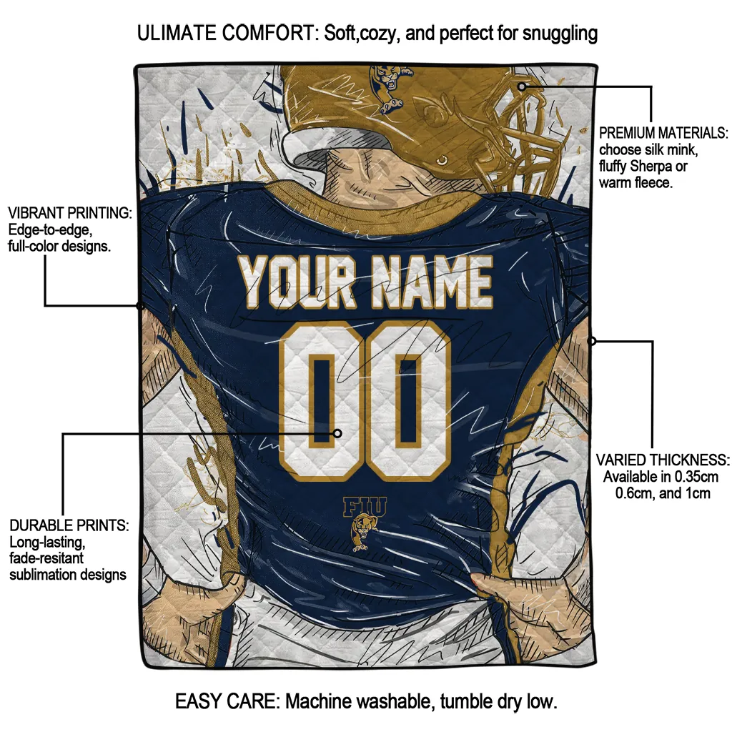 The Customized FIU Panthers Player Sketch Blue Gray Quilt Blanket is more than a blanket—it’s everyday comfort, thoughtfully made. Crafted from premium quilting fabric with a soft microfiber touch, it offers a smooth hand-feel and lasting coziness. Layered quilting with a cotton-filled core provides adaptable warmth across seasons while maintaining a clean, tailored look on your bed or sofa.