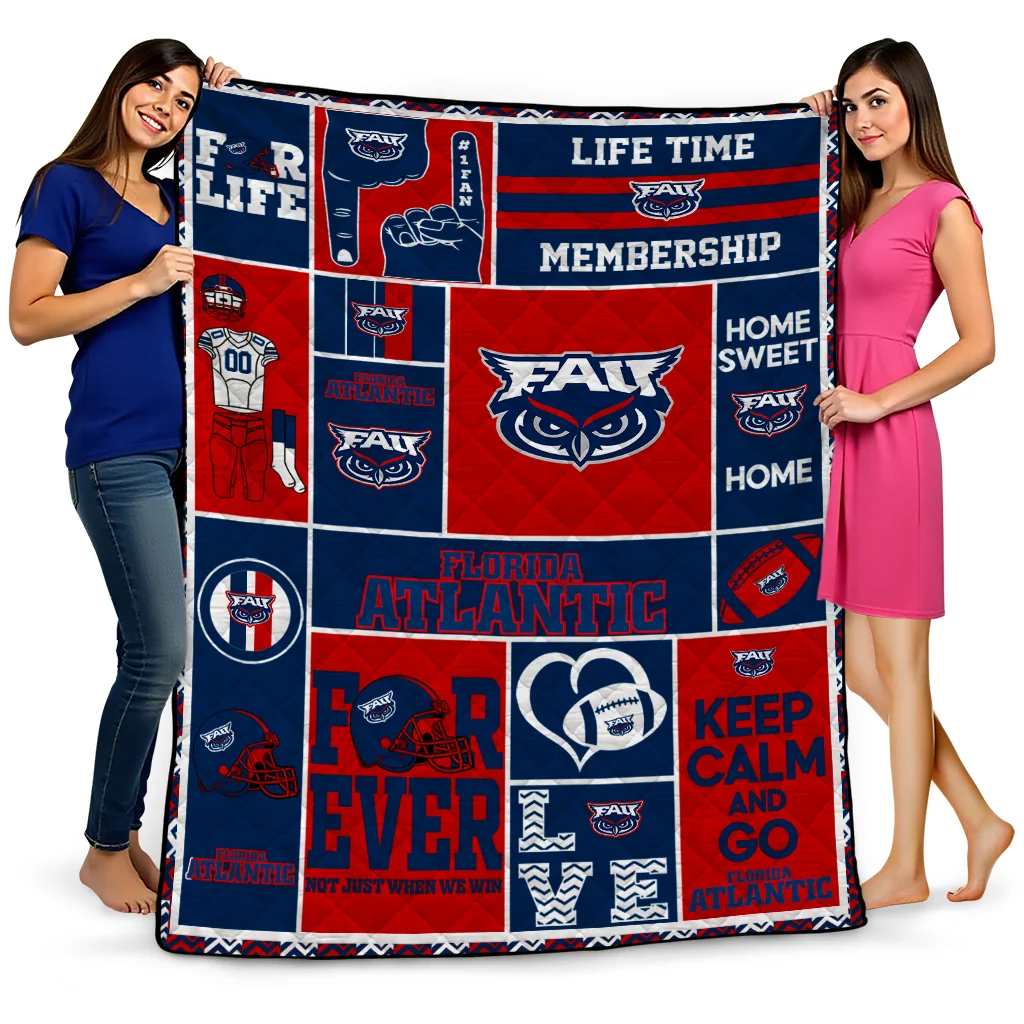 The Customized Florida Atlantic Owls Helmet Passion Blue Quilt Blanket is more than a blanket—it’s everyday comfort, thoughtfully made. Crafted from premium quilting fabric with a soft microfiber touch, it offers a smooth hand-feel and lasting coziness. Layered quilting with a cotton-filled core provides adaptable warmth across seasons while maintaining a clean, tailored look on your bed or sofa.