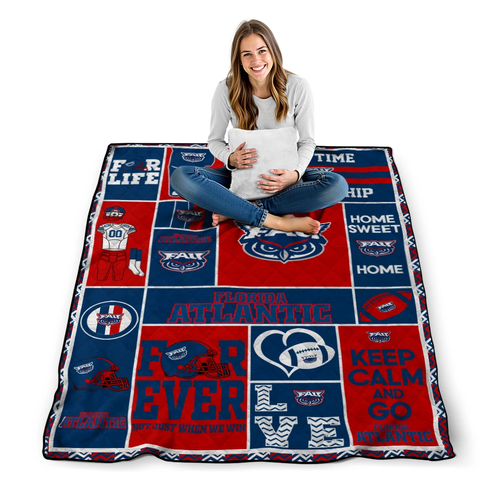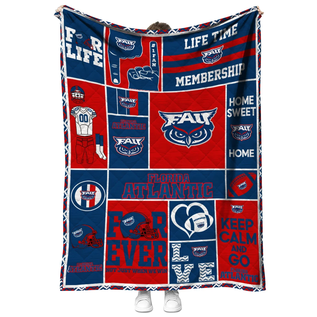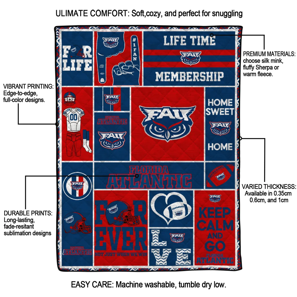 Wrap yourself in warmth and pride with the Customized Florida Atlantic Owls Helmet Passion Blue Quilt Blanket from the Florida Atlantic Owls Blankets collection at Yes That Blanket. Made from 100% premium quilting-weight polyester blended with a touch of microfiber, this quilt offers a smooth, soft finish you’ll love. Choose between two quilting styles—Stipple or Diagonal—and enjoy the comfort of a cotton-filled layer inside that adds extra coziness for every season. The border is available in classic black or white, giving your design a clean, timeless edge.