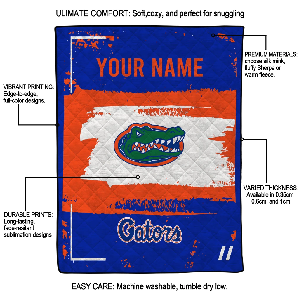 Customized Florida Gators Grunge Patch Blue White Quilt Blanket