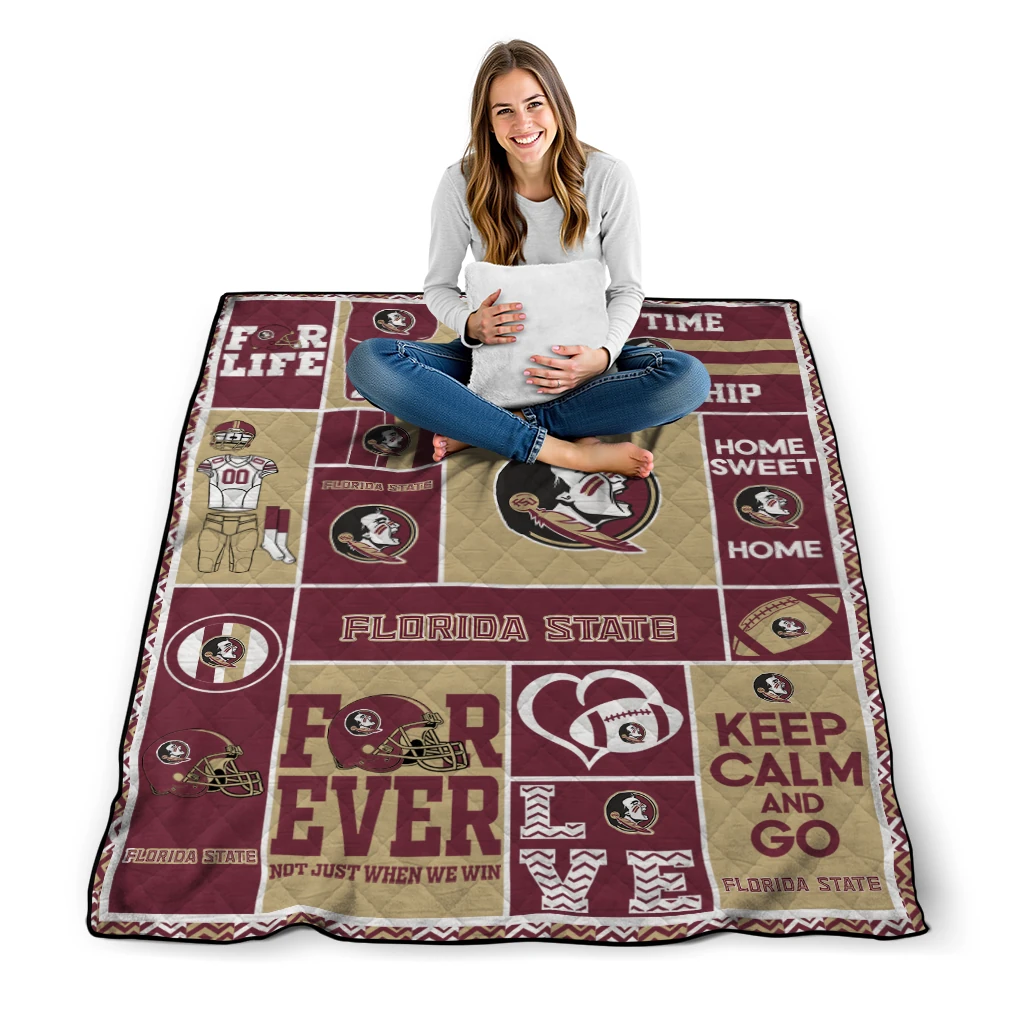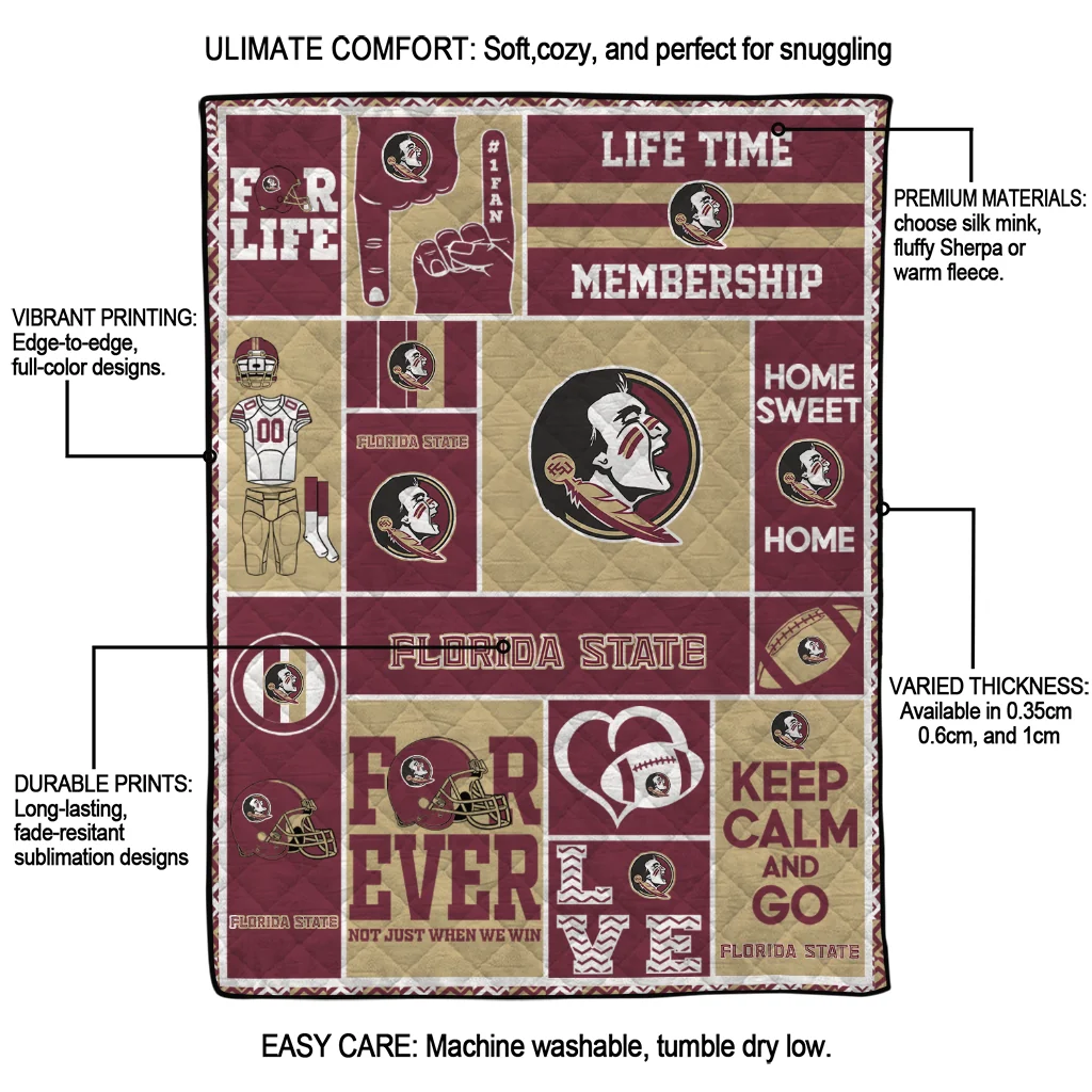 The Customized Florida State Seminoles Helmet Passion Garnet Quilt Blanket is more than a blanket—it’s everyday comfort, thoughtfully made. Crafted from premium quilting fabric with a soft microfiber touch, it offers a smooth hand-feel and lasting coziness. Layered quilting with a cotton-filled core provides adaptable warmth across seasons while maintaining a clean, tailored look on your bed or sofa.