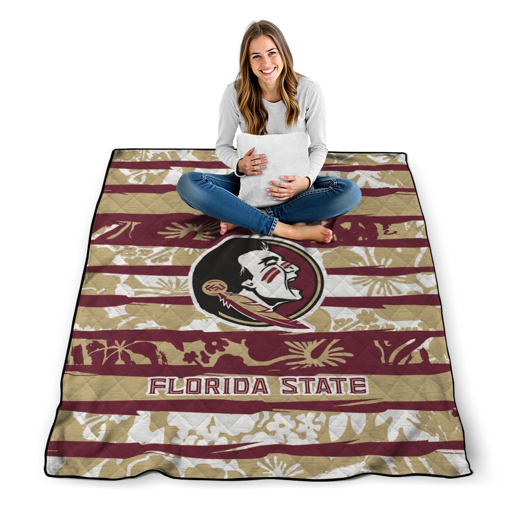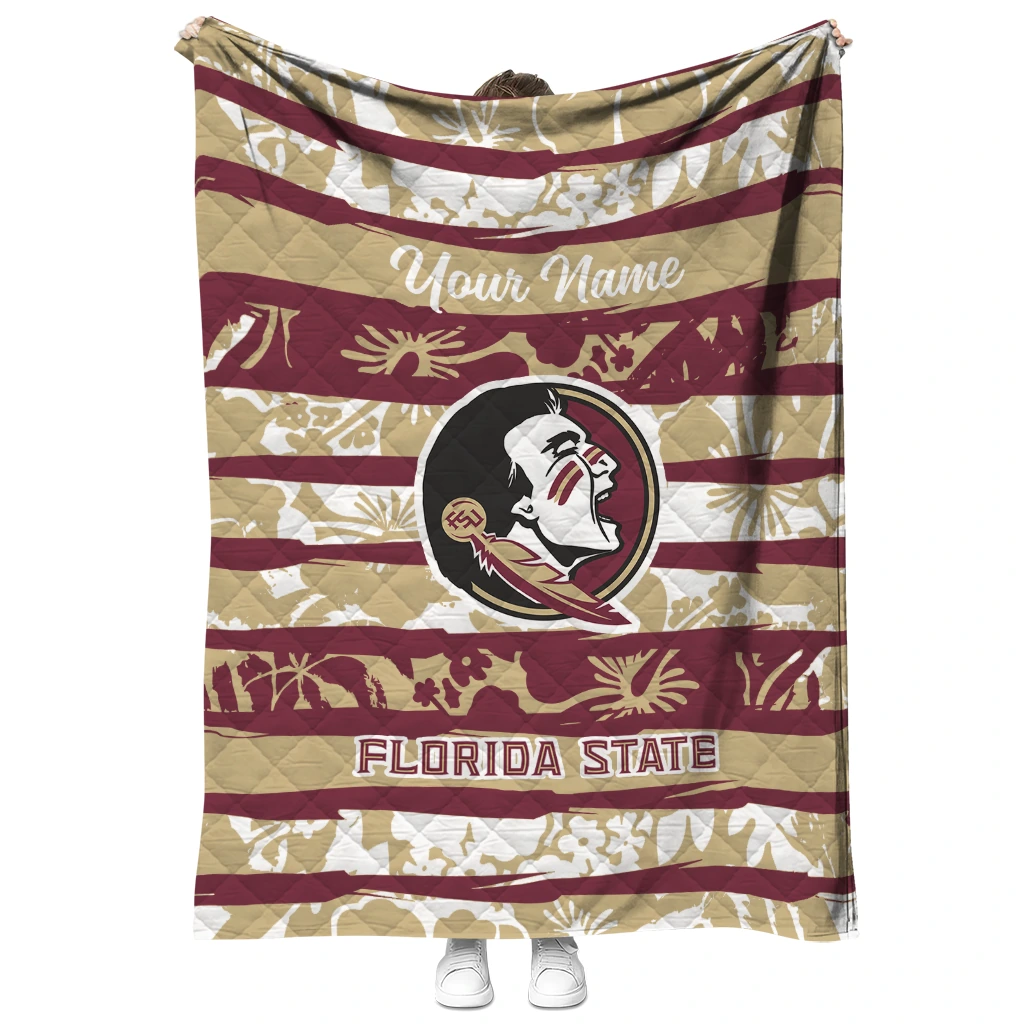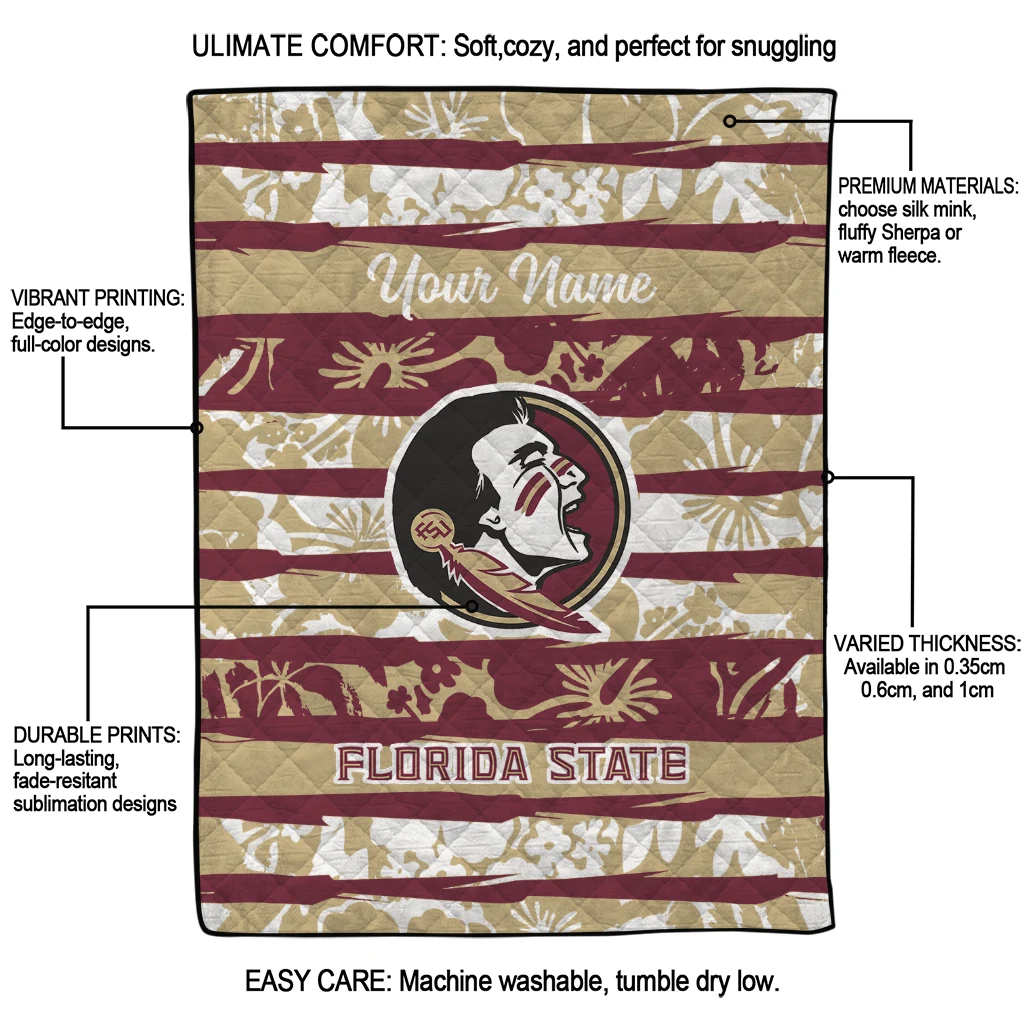 Customized Florida State Seminoles Layered Florals Garnet White Quilt Blanket