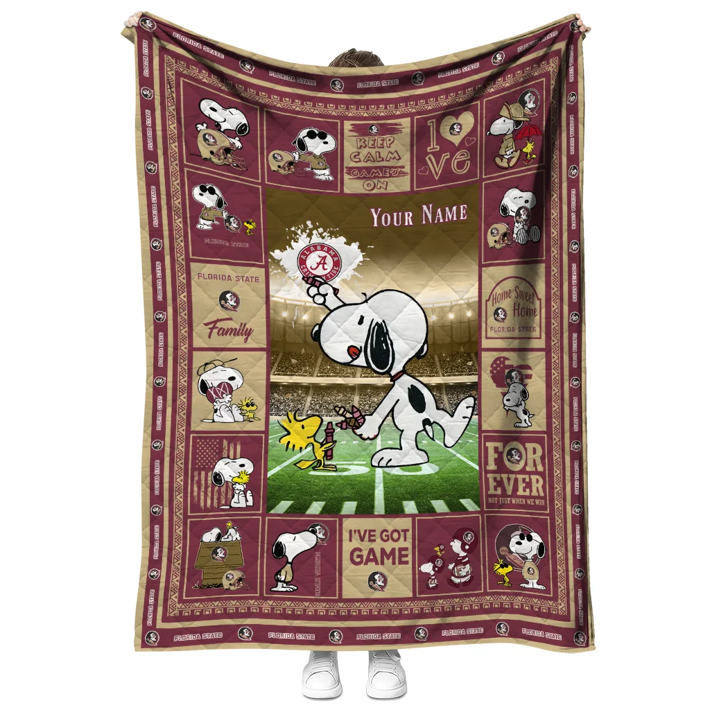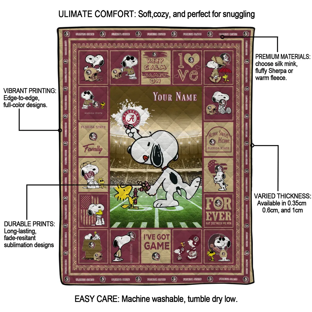 The Customized Florida State Seminoles Snoopy Coach Garnet Quilt Blanket is more than a blanket—it’s everyday comfort, thoughtfully made. Crafted from premium quilting fabric with a soft microfiber touch, it offers a smooth hand-feel and lasting coziness. Layered quilting with a cotton-filled core provides adaptable warmth across seasons while maintaining a clean, tailored look on your bed or sofa.