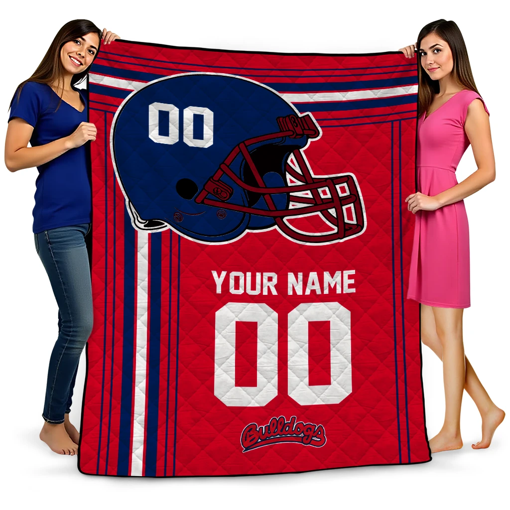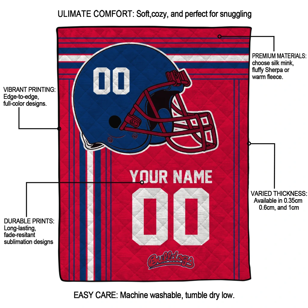 The Customized Fresno State Bulldogs Helmet Theme Red Quilt Blanket is more than a blanket—it’s everyday comfort, thoughtfully made. Crafted from premium quilting fabric with a soft microfiber touch, it offers a smooth hand-feel and lasting coziness. Layered quilting with a cotton-filled core provides adaptable warmth across seasons while maintaining a clean, tailored look on your bed or sofa.