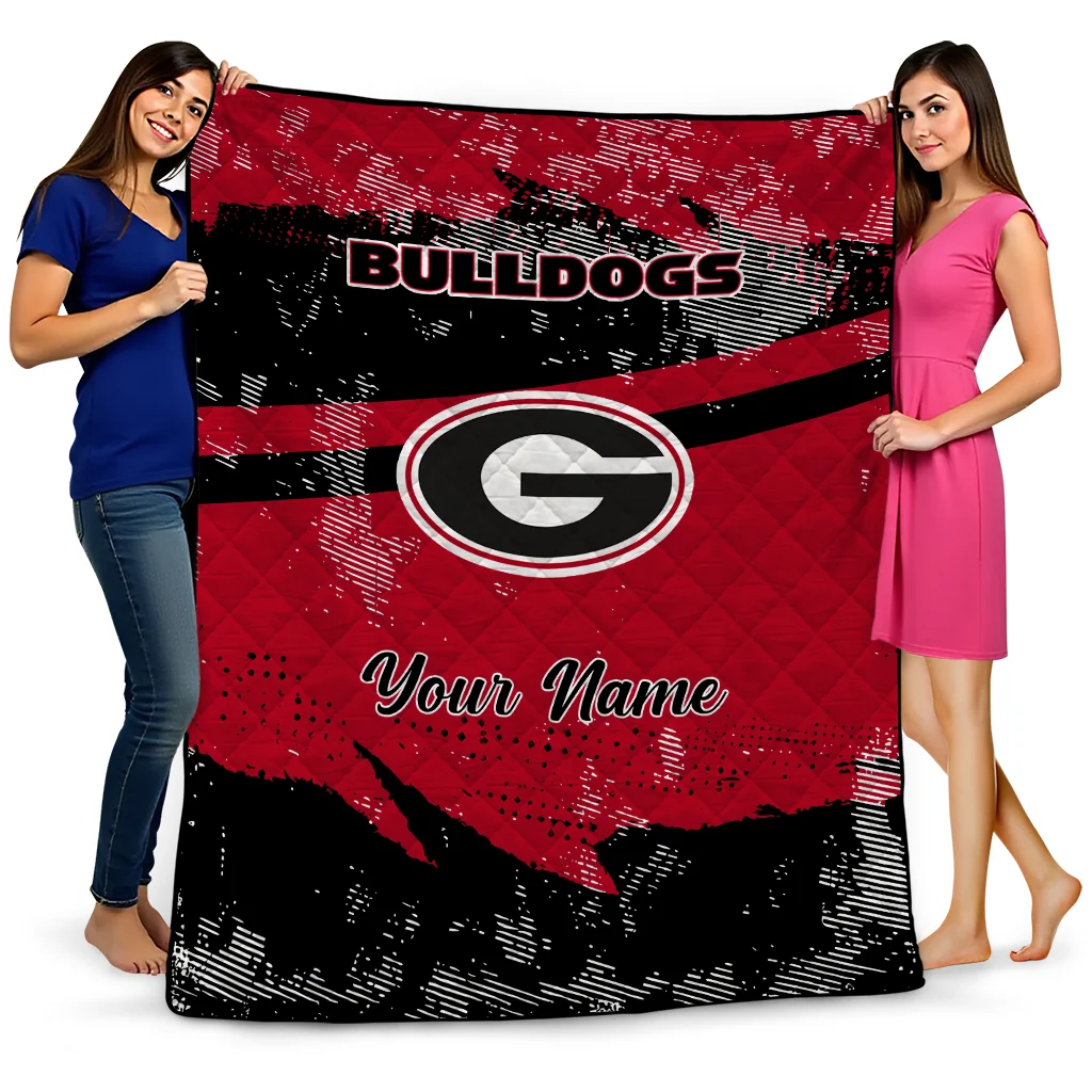 Customized Georgia Bulldogs Brushstroke Layers Red Quilt Blanket